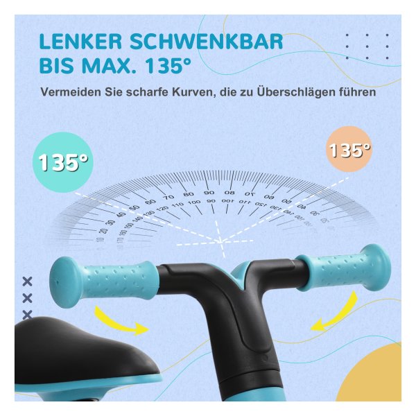 Het brede zadel en de anti-slip stuurgrepen zorgen voor extra comfort en grip tijdens het rijden. Daarnaast is de stuurhoek beperkt tot 135 °, waardoor uw kind veilig kan sturen en manoeuvreren zonder risico op kantelen. De loopfiets is eenvoudig en snel te monteren, zodat uw kind snel op avontuur kan gaan.