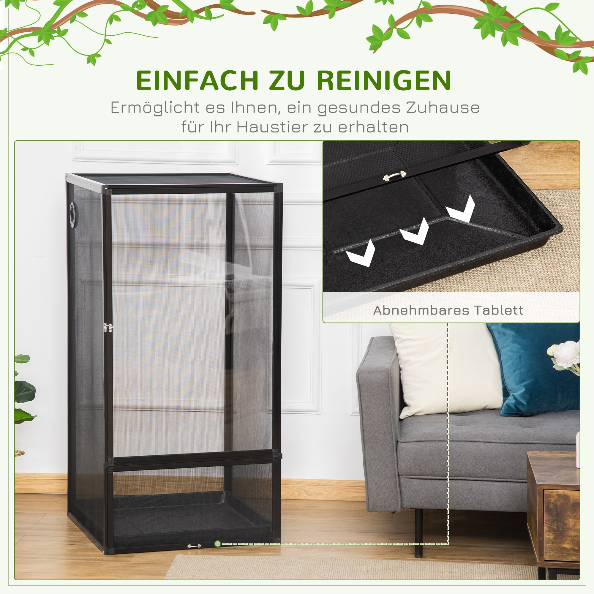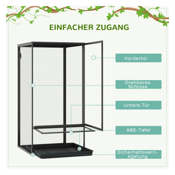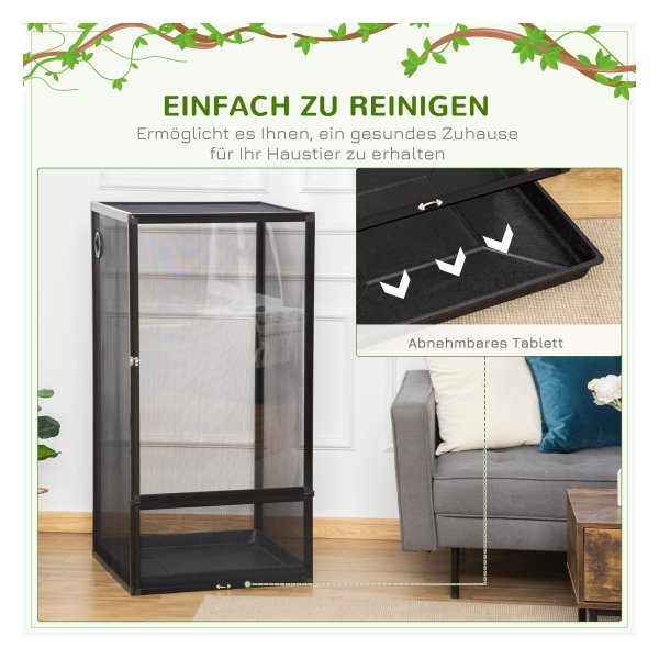 Het terrarium is voorzien van een acryl deur waardoor u uw huisdieren goed kunt observeren. De verwijderbare vloerpan en vloerdeur maken het schoonmaken en onderhouden van het terrarium een fluitje van een cent.