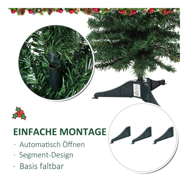 De kerstboom is een essentieel onderdeel van elke kerstversiering en deze kunstmatige boom biedt de perfecte oplossing voor elk huis. Met 212 realistische PVC-takken heeft deze boom een vol en weelderig uiterlijk dat de kerstsfeer in huis brengt.