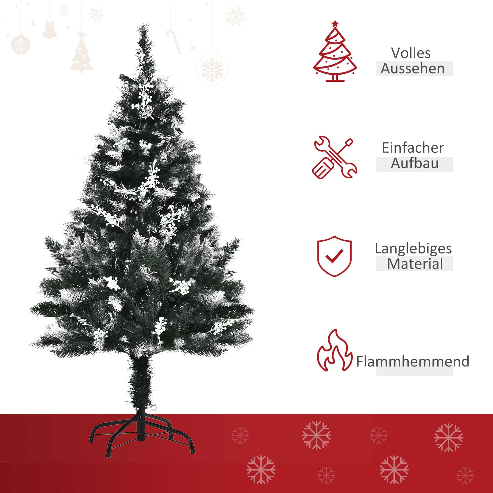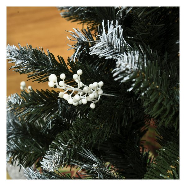 Bullet Point 2 | inclusief decoratie: een volle, dichte potloodvorm wordt aangeboden door 222 overvloedige plastic takken voor een levensecht uiterlijk, met 28 witte bessen zijn inbegrepen voor het decoreren |