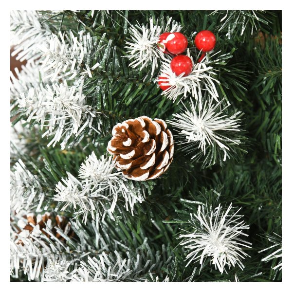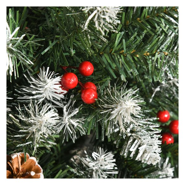 Bullet Point 2 | Met decoratie: een volle, dichte, dichte boomvorm wordt aangeboden door overvloedige plastic takken, met rode bessen, dennenappels als decoratie |
