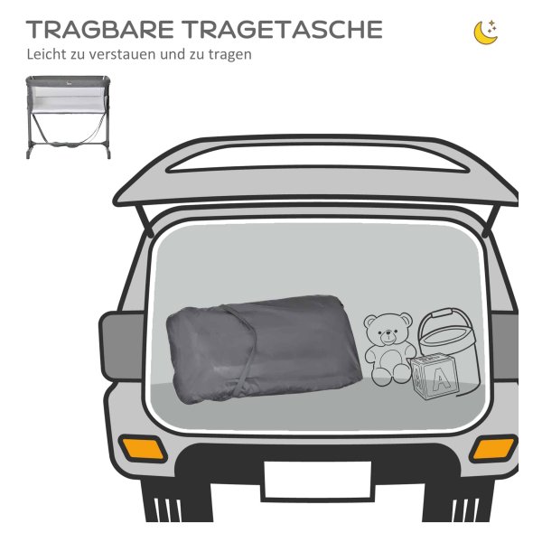 Het babybedje is niet alleen geschikt voor thuisgebruik, maar ook ideaal als reiswieg. Het bed kan in enkele seconden worden opgesteld en met een simpele handbeweging worden opgevouwen. De meegeleverde tas maakt het gemakkelijk om het bedje te vervoeren en op te bergen.