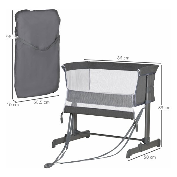 Babybedje – Inklapbaar en Verstelbare Hoogte – Grijs