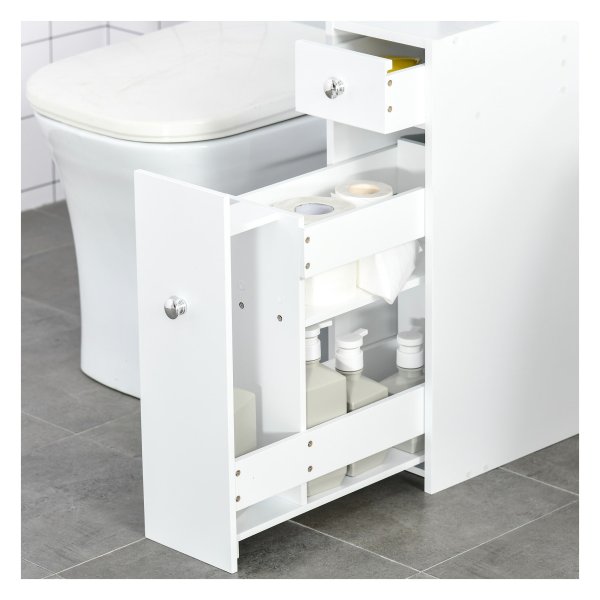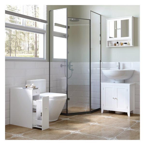 De badkamerkast is gemaakt van hoogwaardig MDF en heeft een frisse witte kleur die perfect bij elke badkamerinrichting past. Met zijn compacte afmetingen en ruime opbergruimte is deze kast een must-have voor elke badkamer.