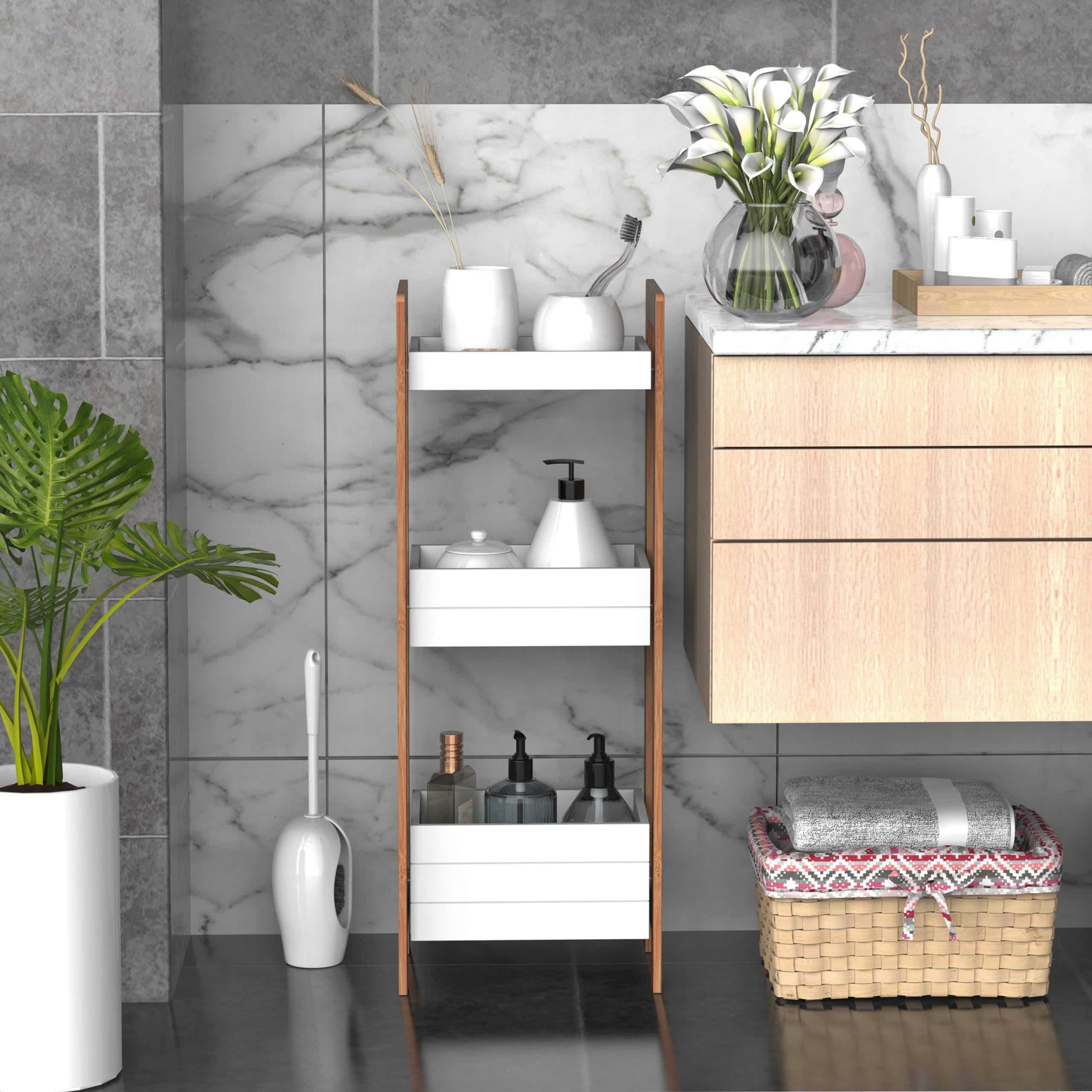 Bamboe – Relaxdays – Staand – Opbergcompartimenten – Wit