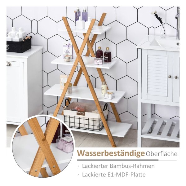 - Met 4 ruime niveaus biedt deze plank veel ruimte voor het opbergen van handdoeken, toiletartikelen en andere benodigdheden in de badkamer.