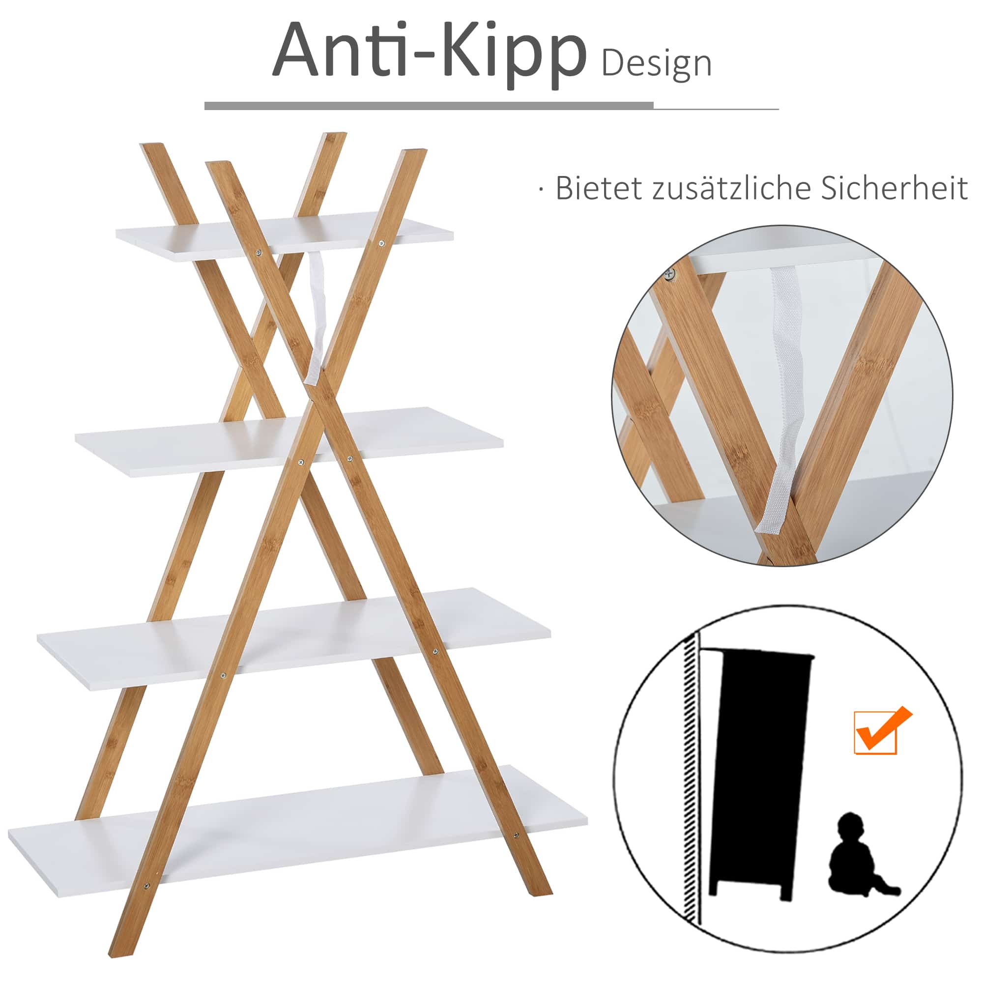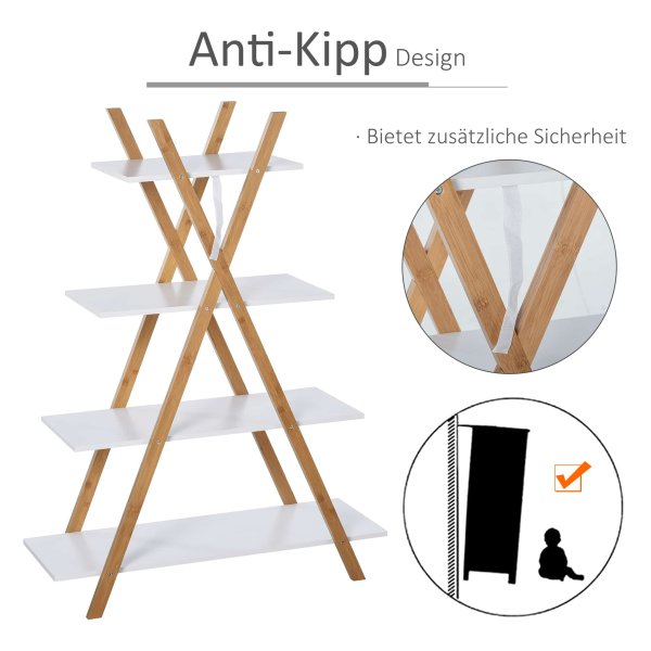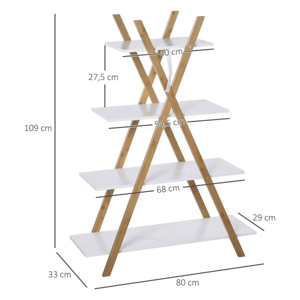 - Afmetingen van de planken (van boven naar beneden): 40L x 29b cm, 54.5l x 29b cm, 68l x 29b cm, 80l x 29b cm