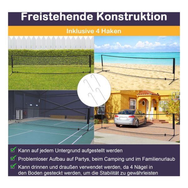 Bovendien is dit net ontworpen om zowel binnen als buiten te gebruiken, waardoor je het plezier van sport en spel overal kunt ervaren. De versterkte constructie met 4 haringen zorgt voor extra stabiliteit, zelfs op oneffen ondergronden, waardoor je zonder zorgen kunt spelen.