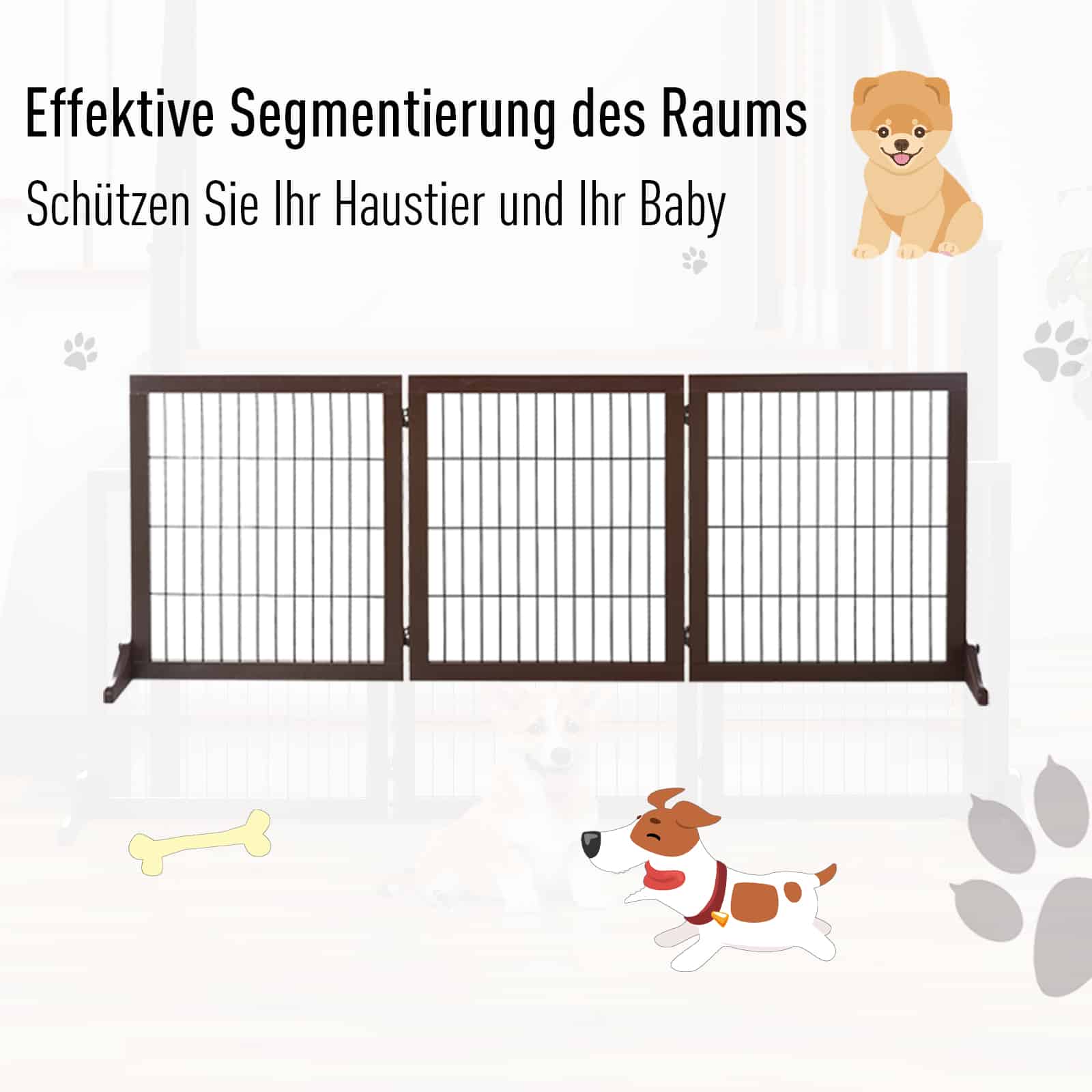 Het hondenhek is gemaakt van duurzaam materiaal en biedt een stevige barrière om ervoor te zorgen dat je huisdier veilig blijft. De robuuste constructie van het hek garandeert een langdurige bescherming en rust in huis.