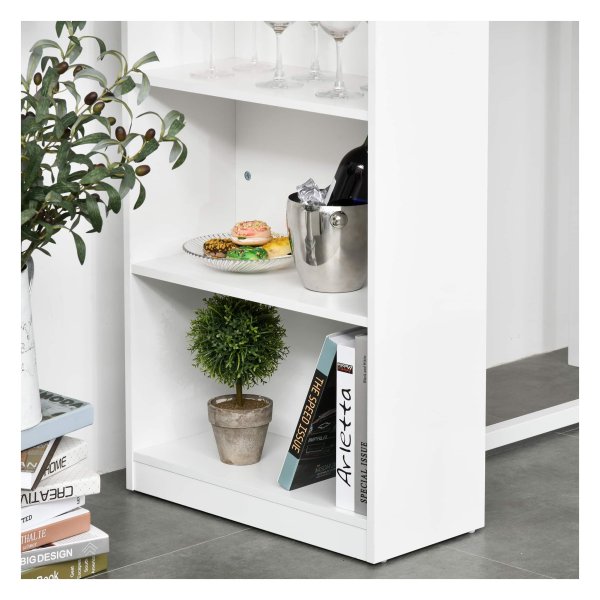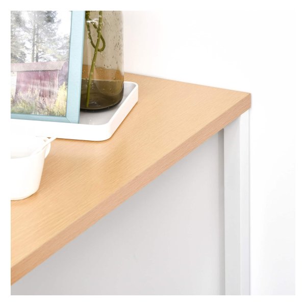 Met een ruim ontwerp, inclusief een breed tafelblad en 3 opbergplanken, biedt deze tafel voldoende ruimte om alledaagse objecten op te slaan en tentoon te stellen. Of het nu gaat om servies, kookboeken of decoratieve items, deze tafel helpt u bij het organiseren en opbergen van uw spullen.