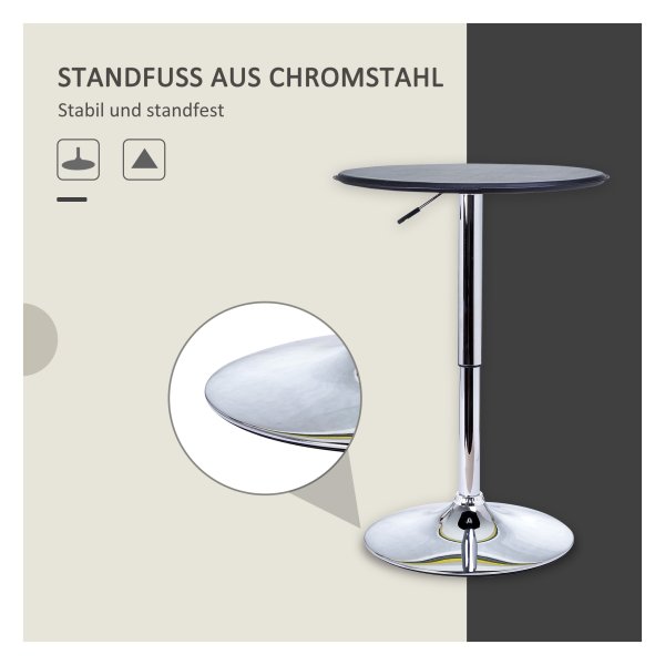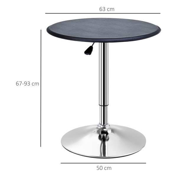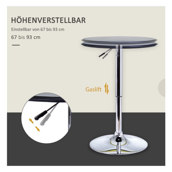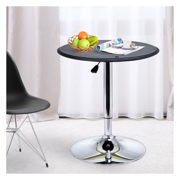 Deze bartafel van is prachtig vervaardigd om de elegantie van uw eetkamer, keuken, bar of patio te versterken. Het ronde houten tafelblad is bedekt met een chique kunstleren bekleding die waterafstotend en gemakkelijk schoon te maken is, wat een gevoel van moderne stijl en klasse uitstraalt. Door middel van eenvoudige gashydrauliek is deze tafel te verstellen van 67 tot 73 cm, waardoor hij afhankelijk van de situatie of omgeving geschikt is voor zittende of staande gasten.