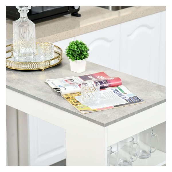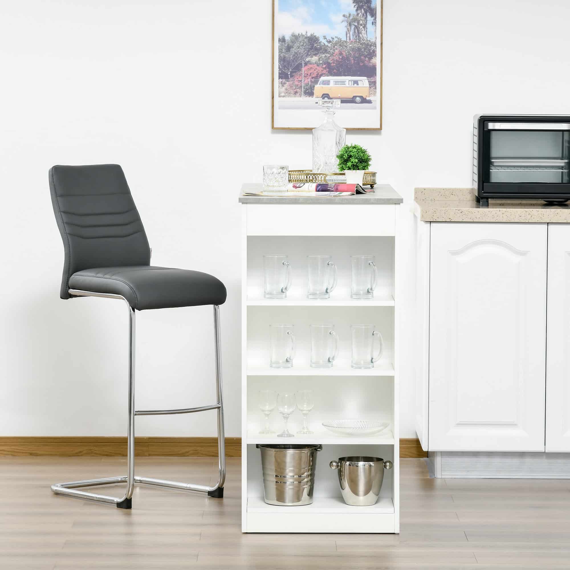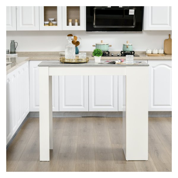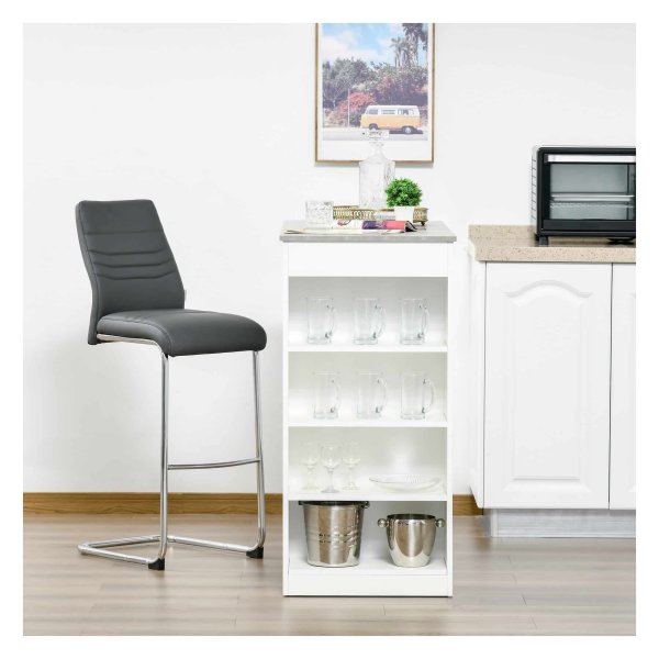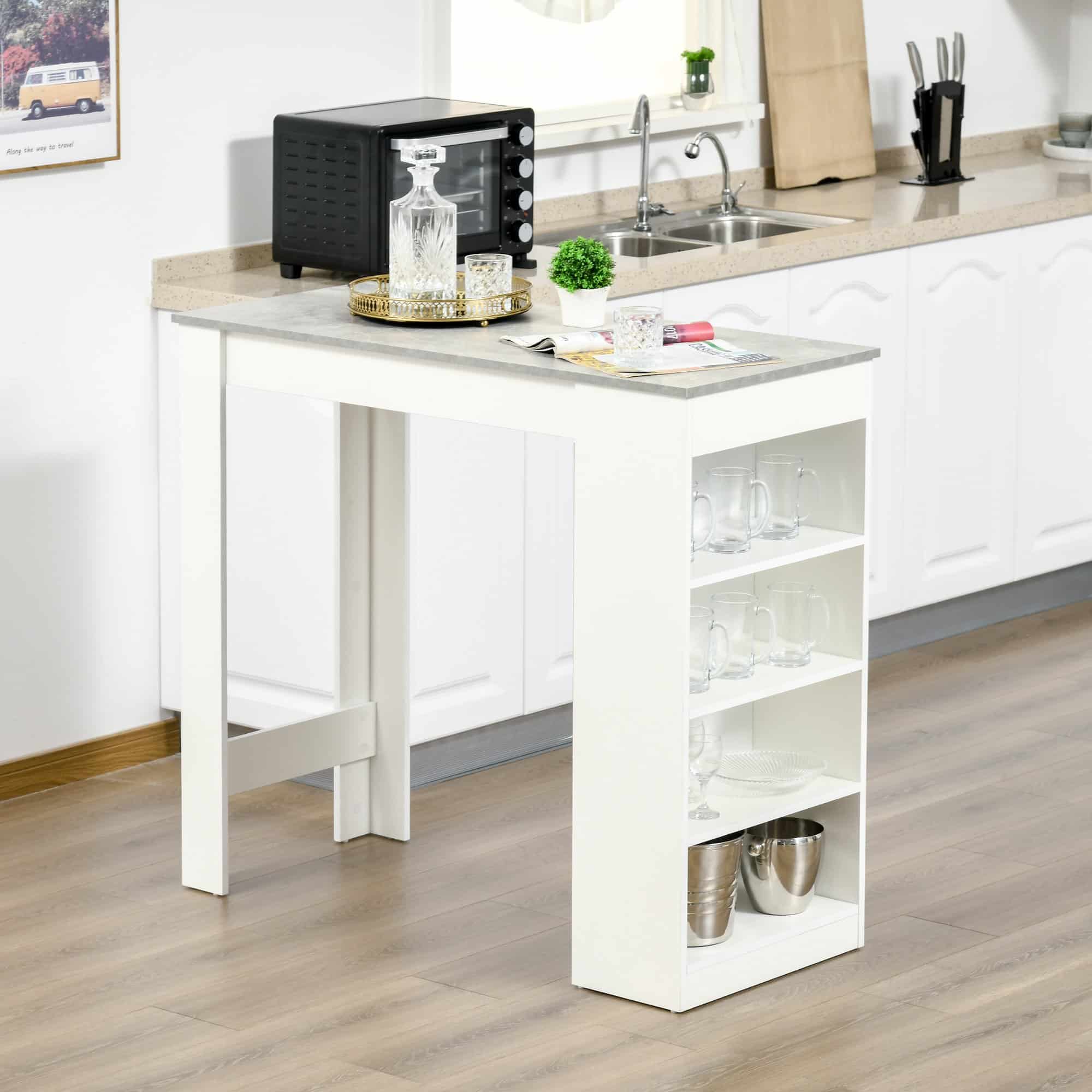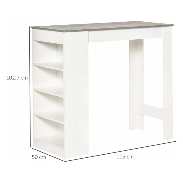 Op zoek naar een stijlvolle en functionele toevoeging aan je keuken of eetkamer? Dan is de Keukentafelbar van Zaza Home precies wat je nodig hebt. Met zijn 4 legplanken en tafelblad in wit/grijs, is deze keukentafelbar perfect voor het organiseren van je keukengerei, glazen, servies en zelfs wat decoratieve items.