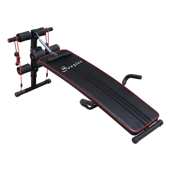 Dankzij de verstelbare bekleding en de weerstandsbanden kun je met deze trainingsbank verschillende oefeningen uitvoeren om je buik-, rug- en armspieren effectief te trainen. Daarnaast is de trainingsbank voorzien van niet-slip voeten, waardoor je tijdens je workout een stevige en stabiele basis hebt.