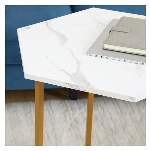 Dankzij de marmeren look brengt de salontafel van TrendyLiving een vleugje luxe in jouw interieur. Bovendien is het moderne design tijdloos en gemakkelijk te combineren met andere meubelstukken. De stevige constructie zorgt voor stabiliteit en duurzaamheid, zodat je jarenlang plezier zult hebben van deze prachtige salontafel.