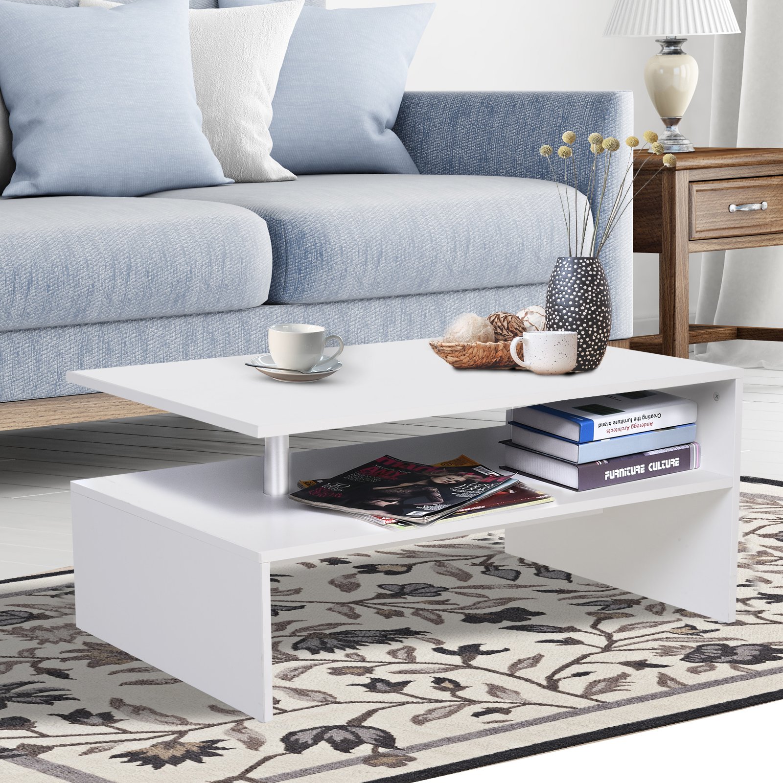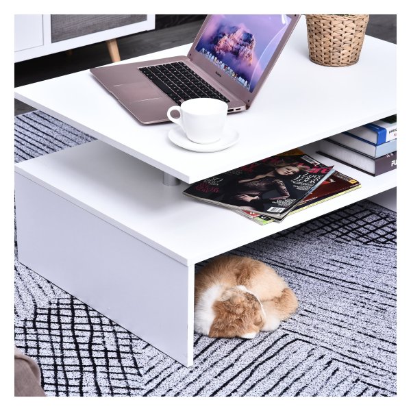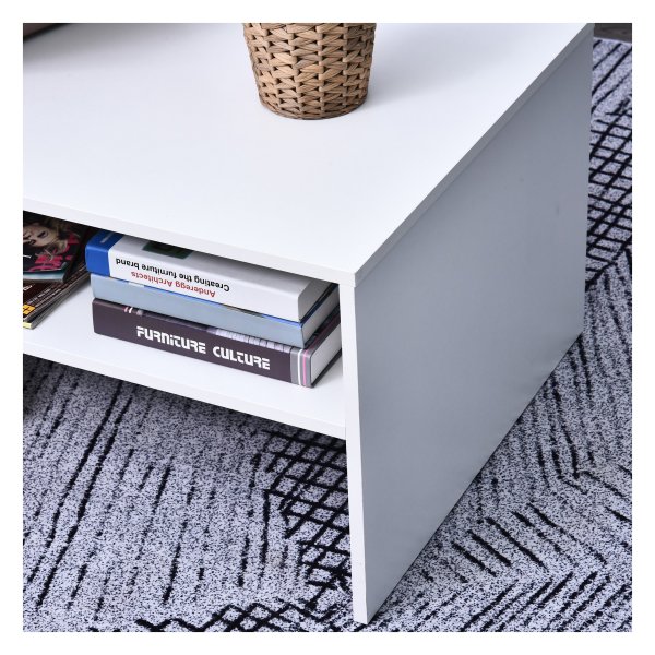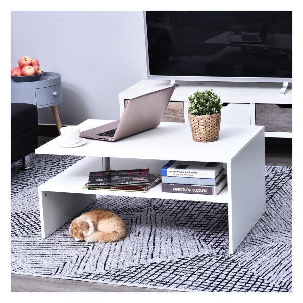 Deze bijzettafel heeft een eigentijds ontwerp dat perfect past bij moderne interieurs. Het is voorzien van twee niveaus, waardoor u uw spullen discreet kunt opbergen op de onderste plank en tegelijkertijd items tentoon kunt stellen op de bovenste plank.