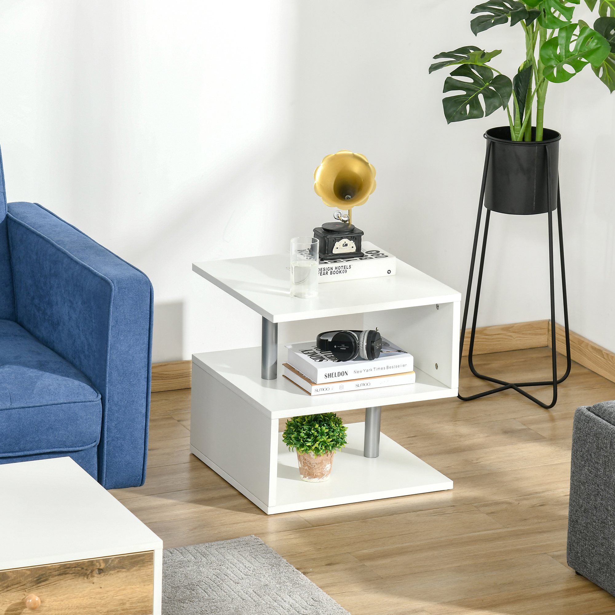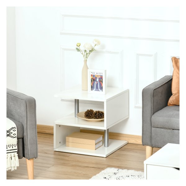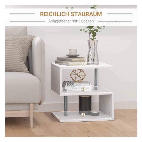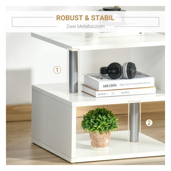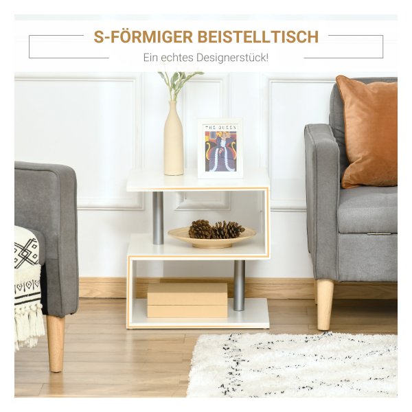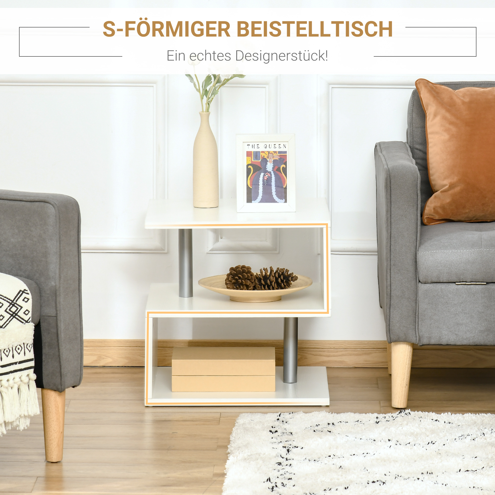 Bijzettafel – Sfeervol Woonhuis – S-vormig – Spaanplaat en Wit Staal