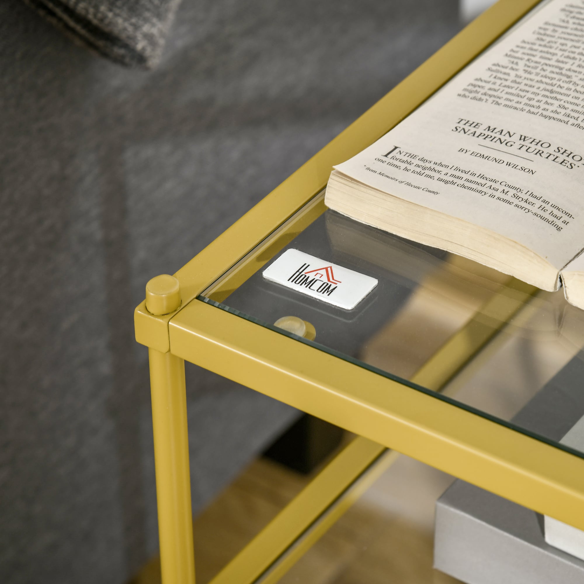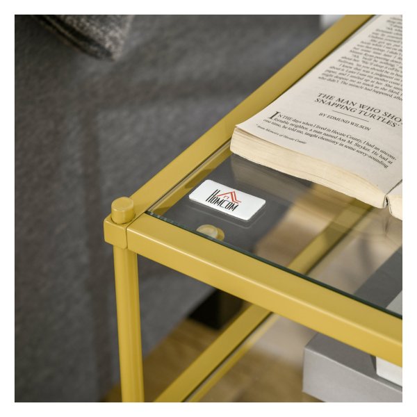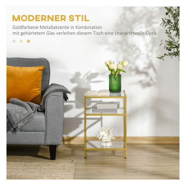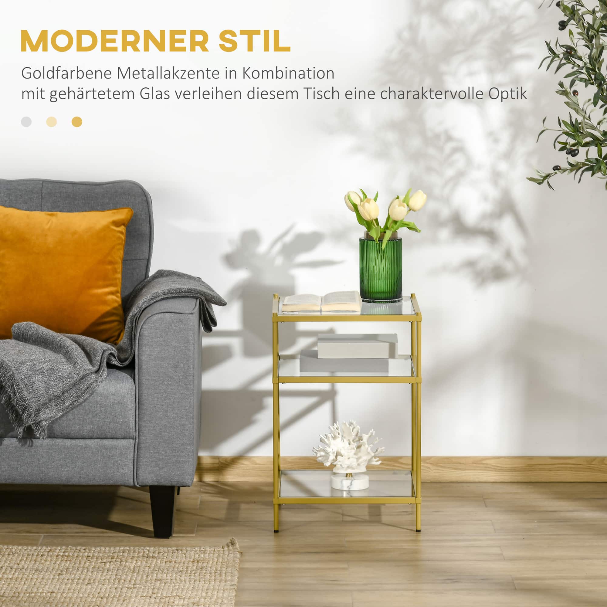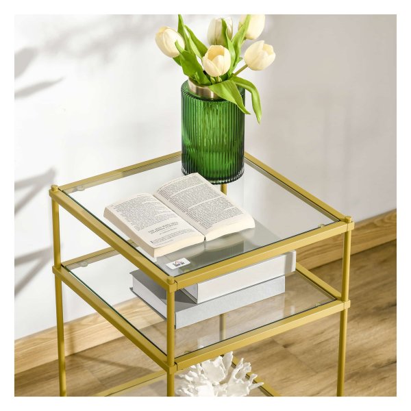Bijzettafel – Zaza Home – Glasplanken – Stalen frame – Goudkleurig