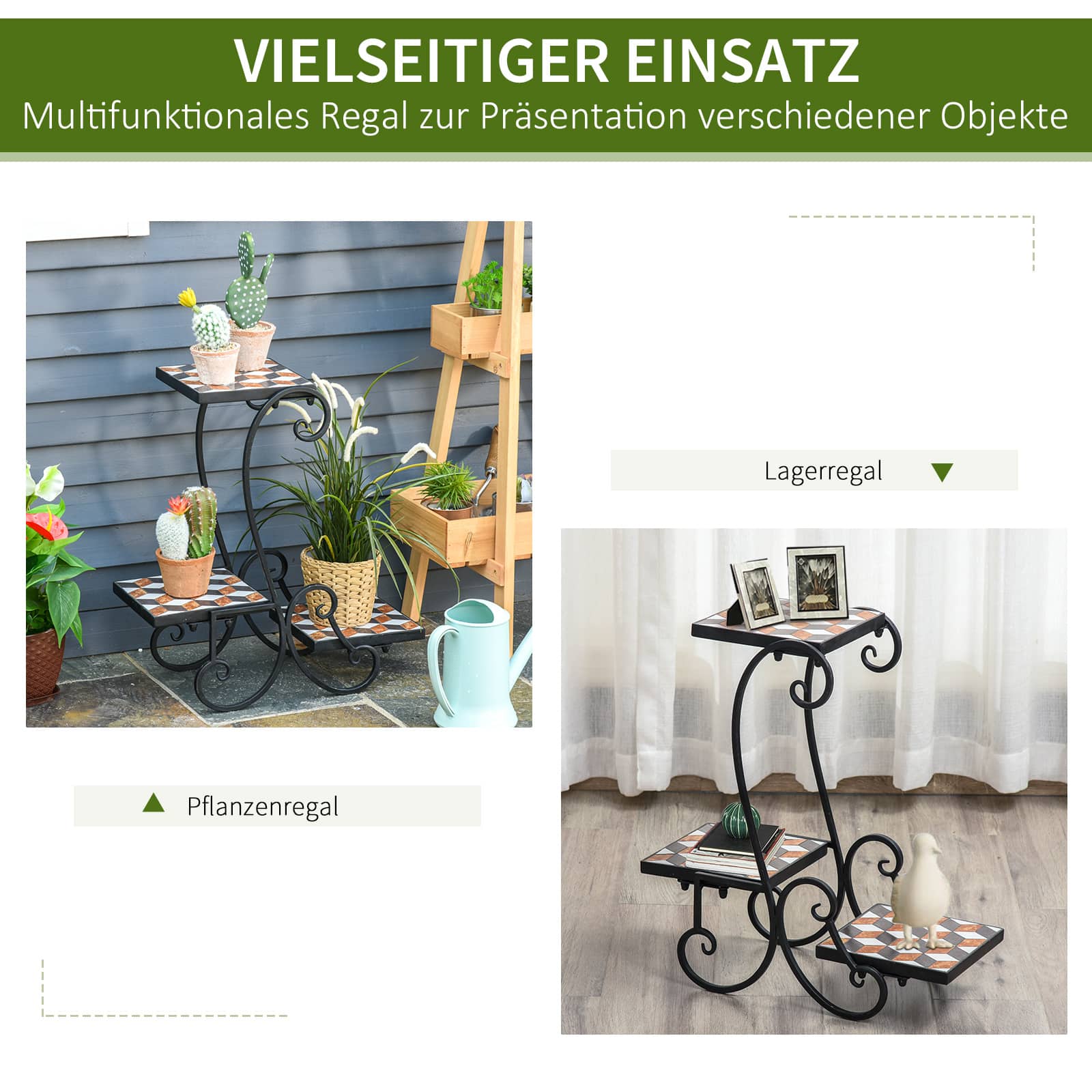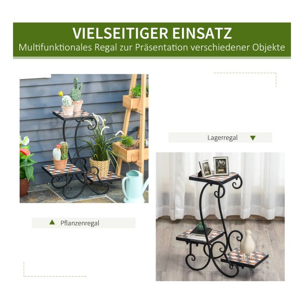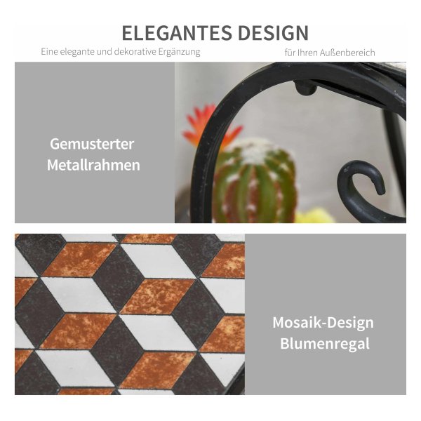 Onze bloemenstandaard met mozaïektegel van outsunny is de perfecte toevoeging aan uw externe decoratie. Met zijn stabiele metalen frame en klassieke mozaïek design geeft deze plantenstoel uw ruimte een kleurrijke en elegante uitstraling. Of u nu op zoek bent naar een stijlvolle toevoeging aan uw woonkamer, terras of binnenplaats, deze bloemplank vormt zowel een decoratief accent als een functionele oplossing om uw planten te presenteren.