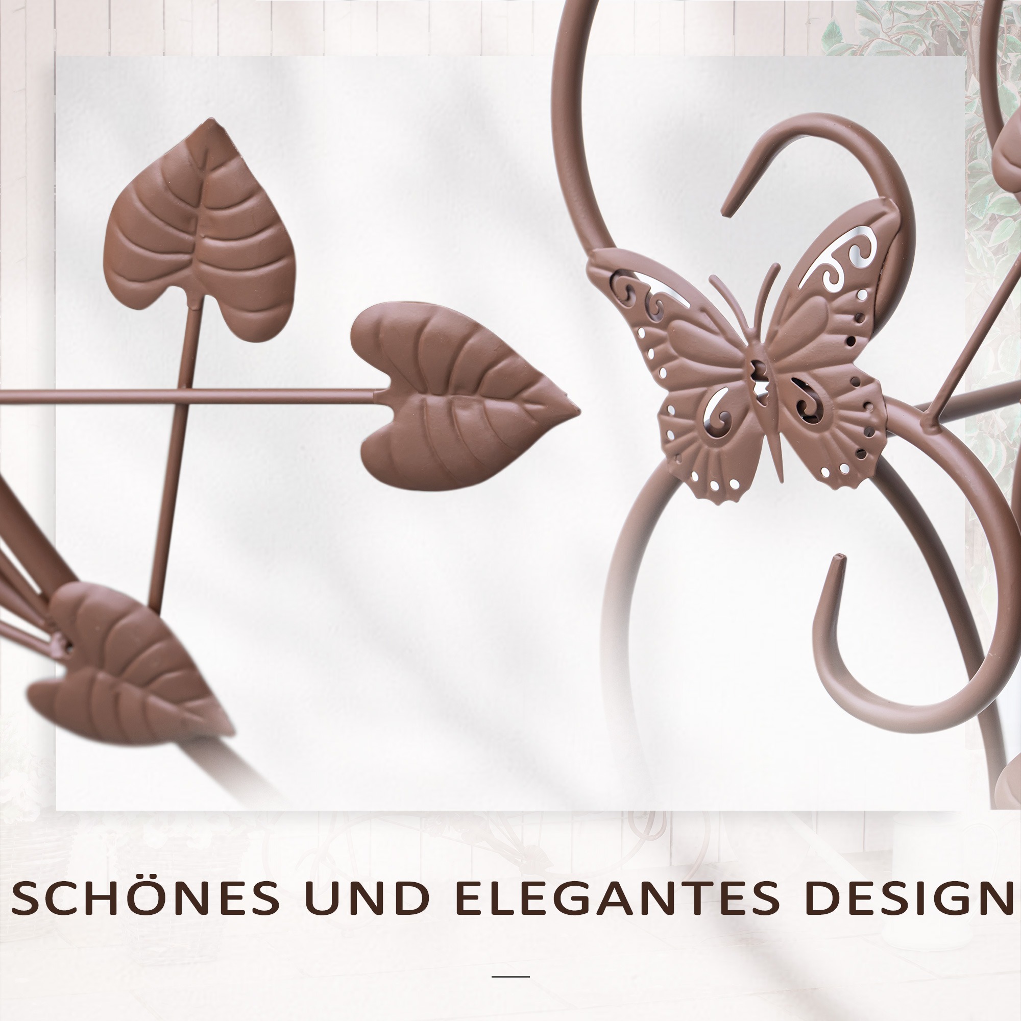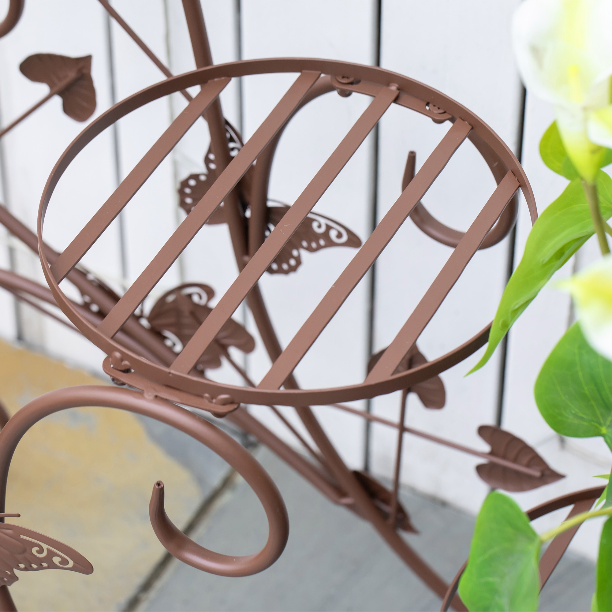 De robuuste metaalconstructie met klassieke bronzen afwerking zorgt voor duurzaamheid en stabiliteit. Daarnaast is deze bloementrap perfect geschikt voor zowel buitenruimtes als binnendecoratie.