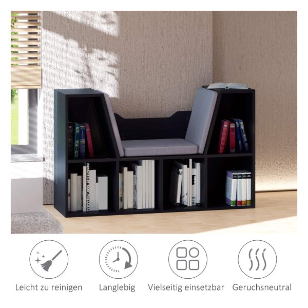 De boekenkast van Zaza Home biedt een slimme opbergoplossing met een modern design. Naast ruimte voor boeken en decoraties, heeft deze kast ook een ingebouwde zitbank voor extra comfort. Geniet van je favoriete boek terwijl je ontspant op de zachte zitplaatsen van deze multifunctionele meubelstuk.