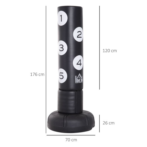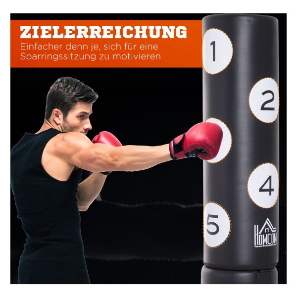 De bokszak is de perfecte bokspartner voor iedereen die graag traint in zijn eigen huis. Met deze zware standboxtas kunt u op een doeltreffende manier werken aan uw bokstechnieken. De robuuste plastic voet van de bokszak kan gevuld worden met water of zand, waardoor u een stabiele basis heeft tijdens uw trainingssessies.