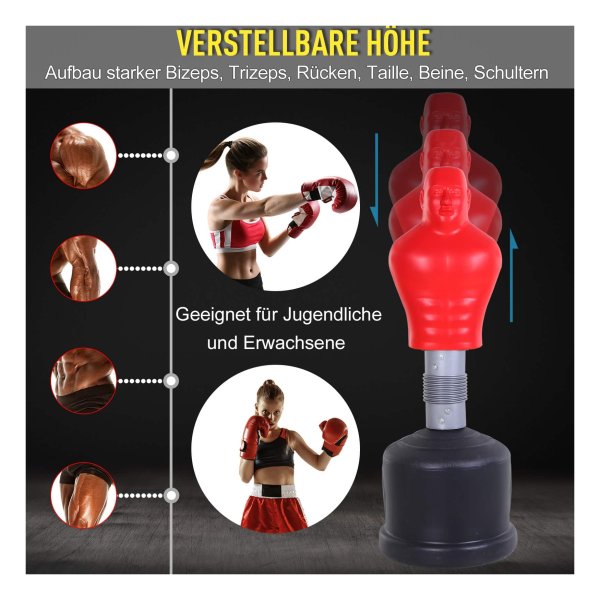 Dankzij de 3-level verstelbare hoogte, met een afstand van 13,5 cm tussen de niveaus, kun je de bokspartner aanpassen aan jouw trainingsvereisten en doelen. Of je nu je techniek wilt verbeteren of je conditie wilt opbouwen, deze bokspartner biedt de ideale ondersteuning.