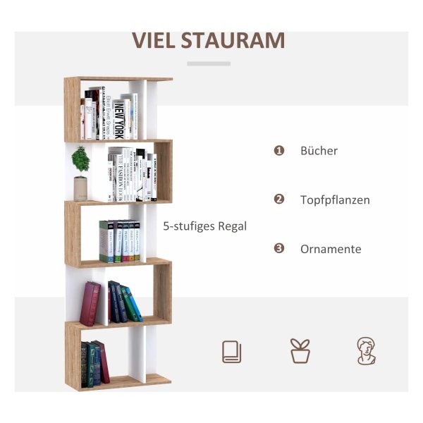 Boekenkast – Zaza Home – S-vormig – 4-niveaus – natuurlijk hout