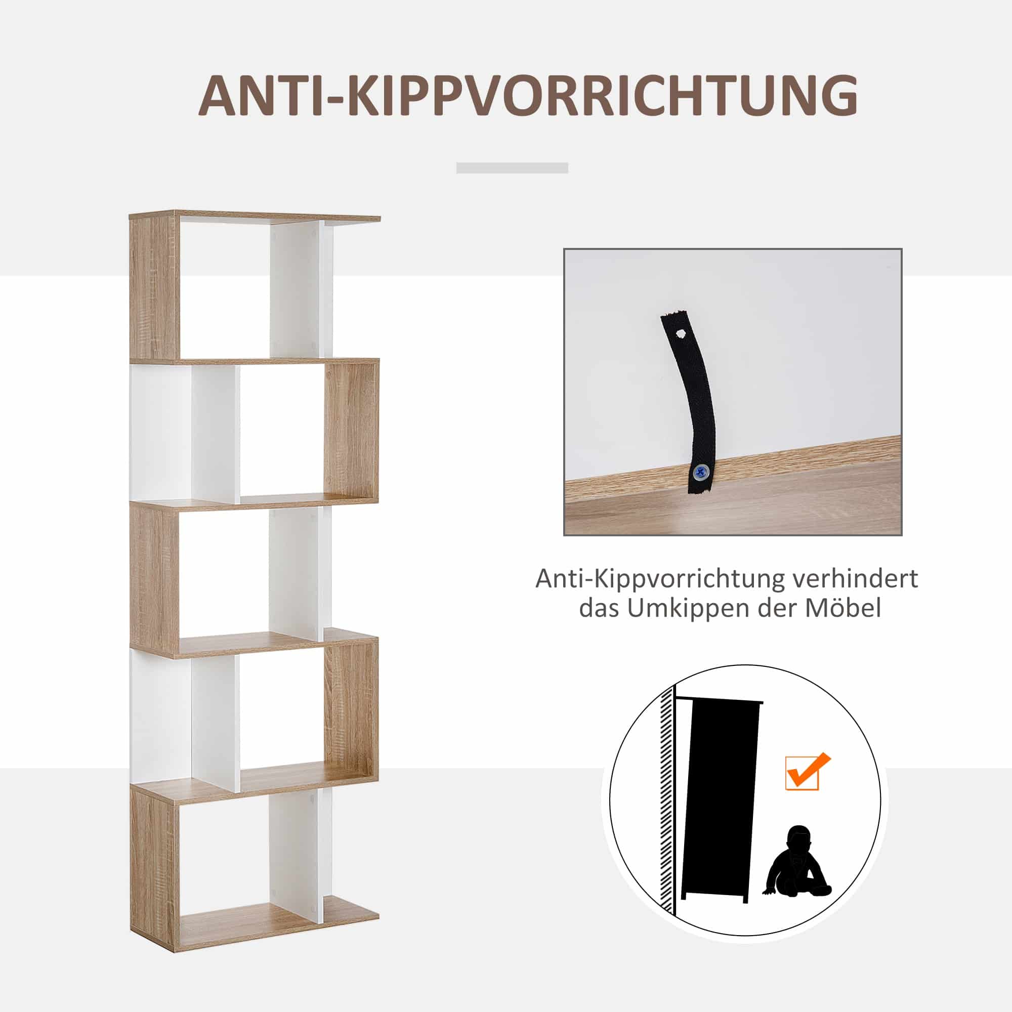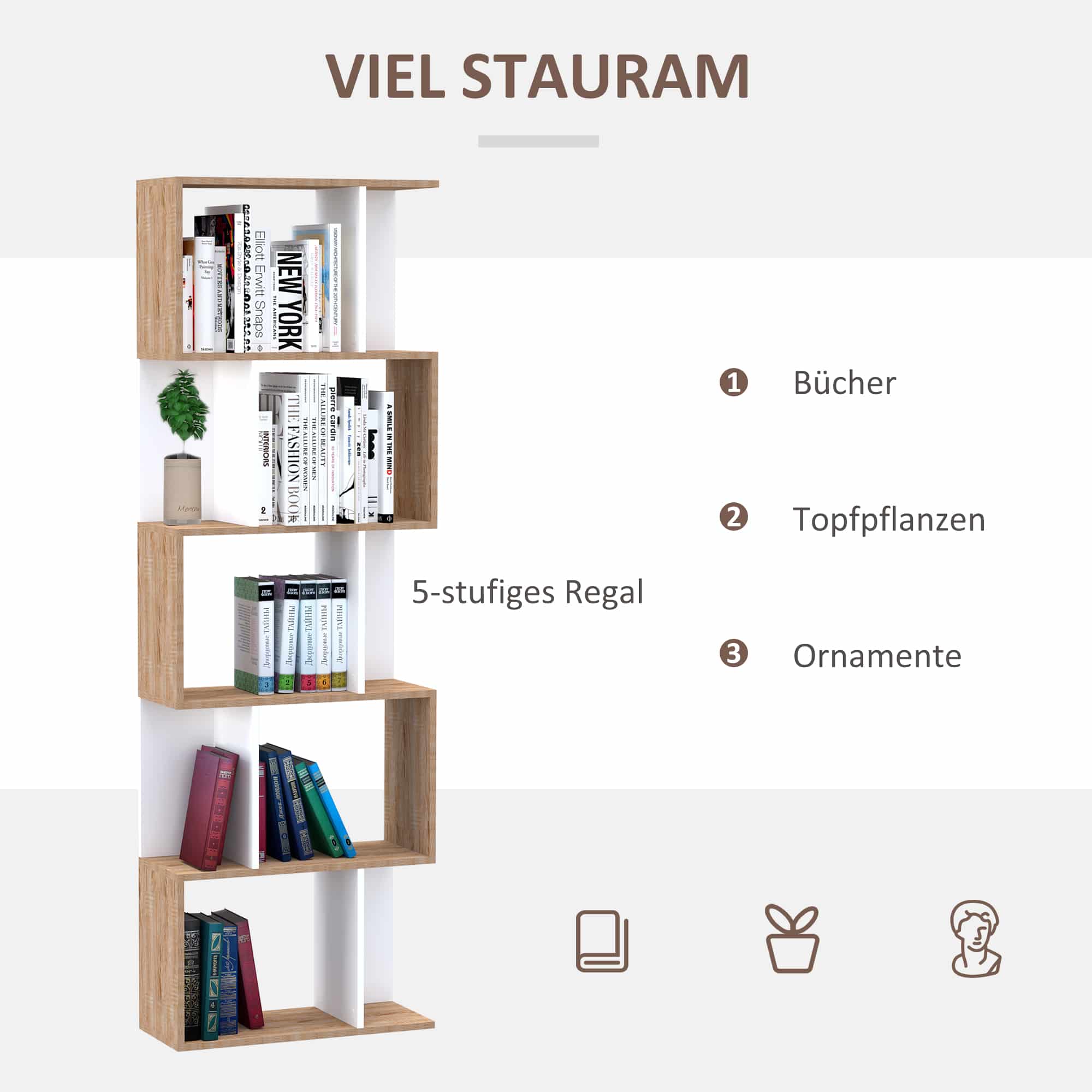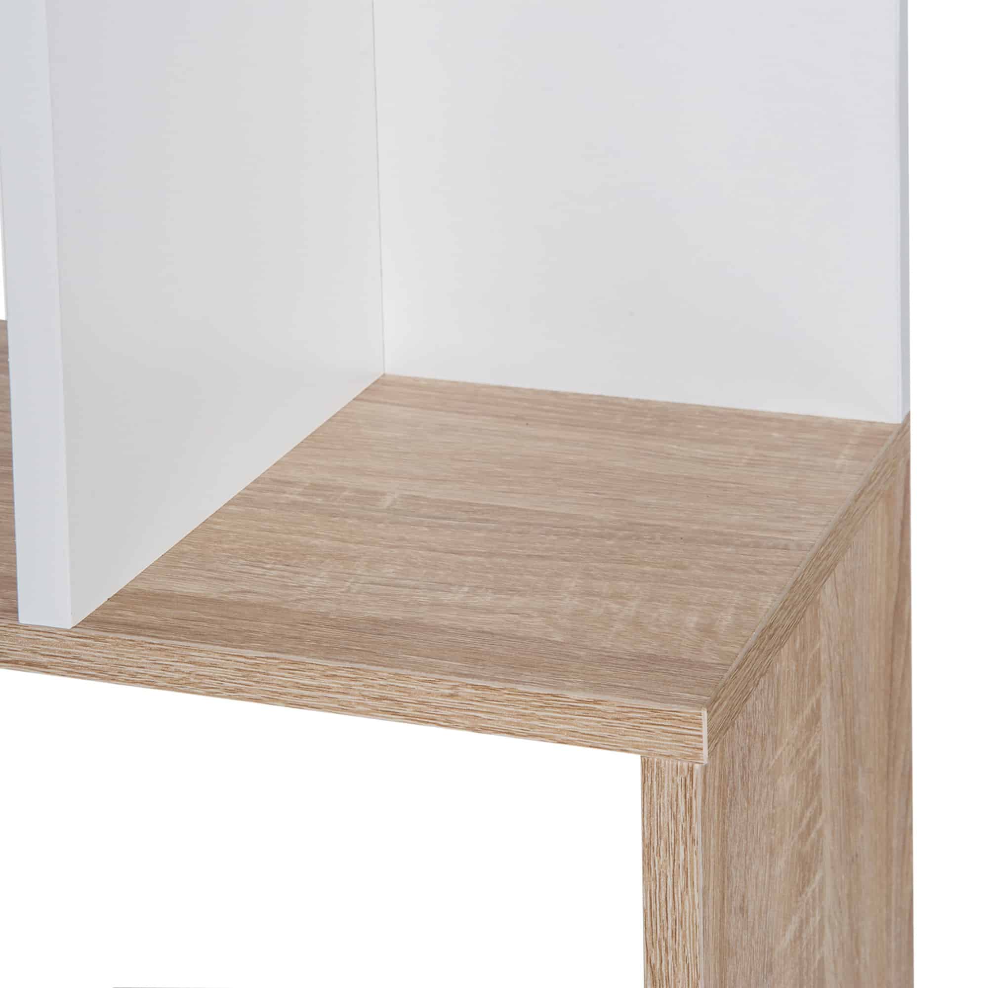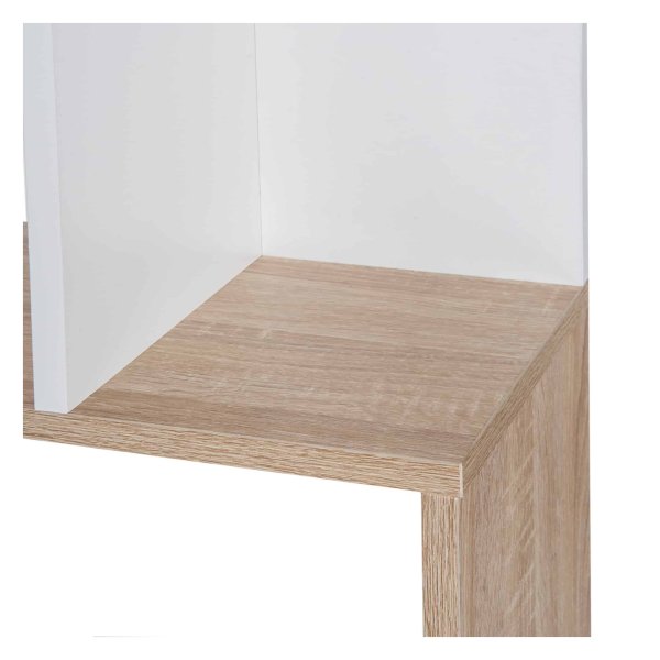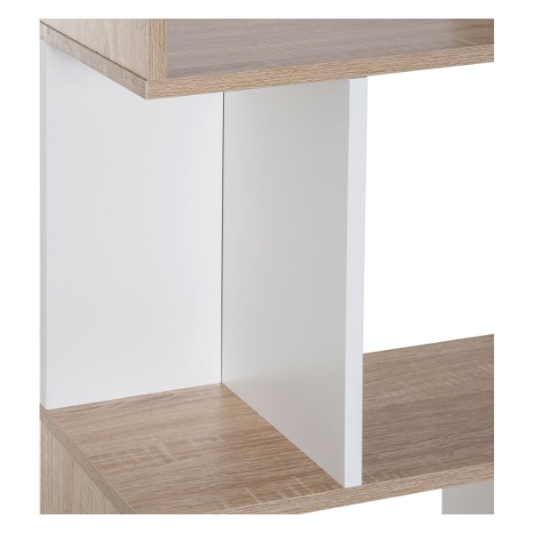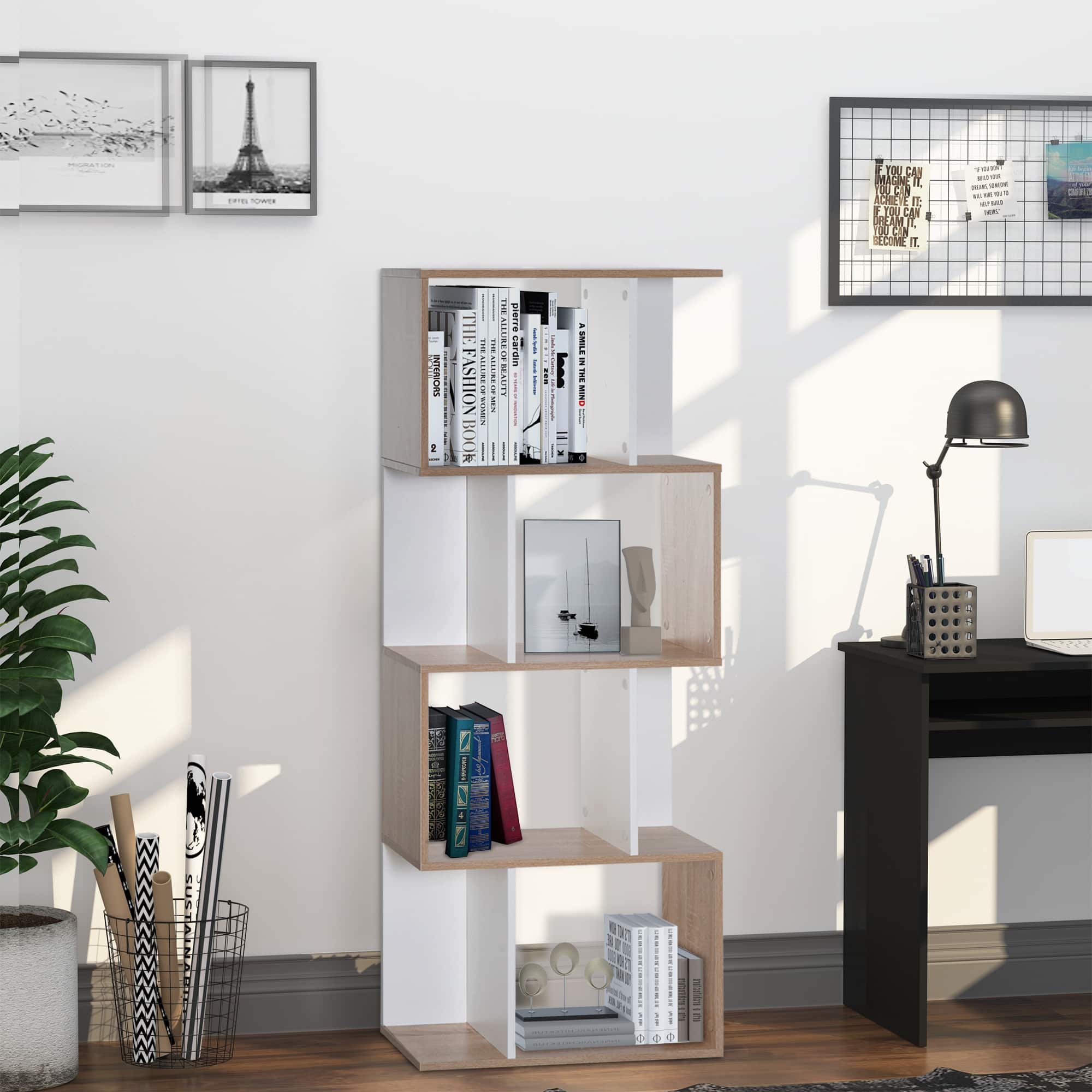 De boekenkast van Zaza Home in S-vormig ontwerp is niet zomaar een gewone boekenplank. Het is een decoratief hoogtepunt dat elke woonkamer zal verfraaien en een moderne touch zal toevoegen. Met vier niveaus en veel compartimenten biedt deze boekenkast voldoende ruimte voor al uw boeken, cd’s, dvd’s en decoratieve items. Daarnaast kan de kast ook dienen als kamerverdeler, waardoor u een veelzijdig meubelstuk in huis haalt.