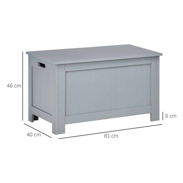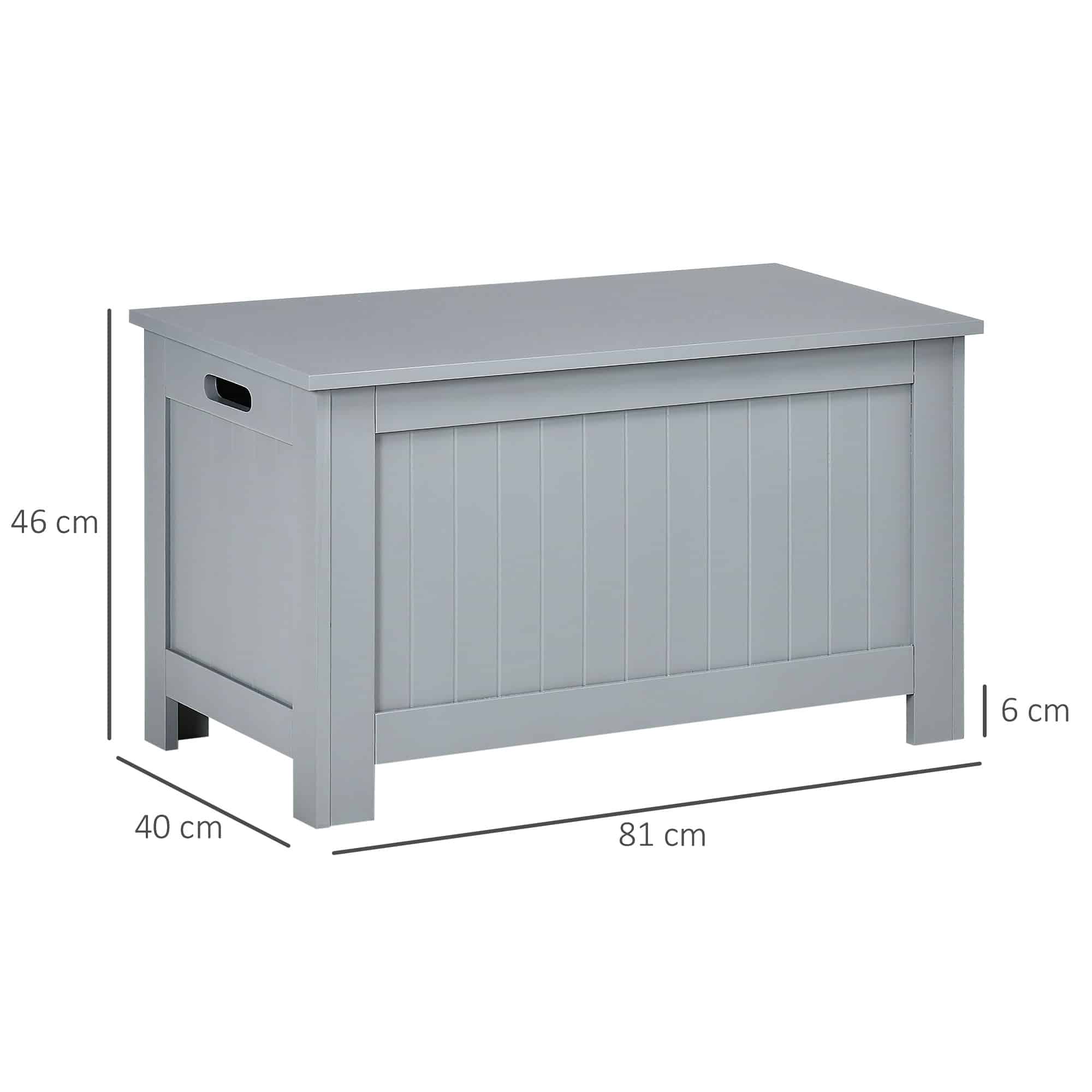 De Opbergkist – LuxeLife – Handvatten – Grijs is gemaakt van hoogwaardige MDF-panelen, waardoor deze stevig en duurzaam is. De afmetingen van de kist zijn 81l x 40b x 46h cm, met een opslagruimte van 75L x 35B x 35H cm. Hierdoor biedt de kist voldoende ruimte voor het opbergen van speelgoed, kleding, beddengoed en andere waardevolle spullen, met een draagvermogen van maximaal 20 kg.