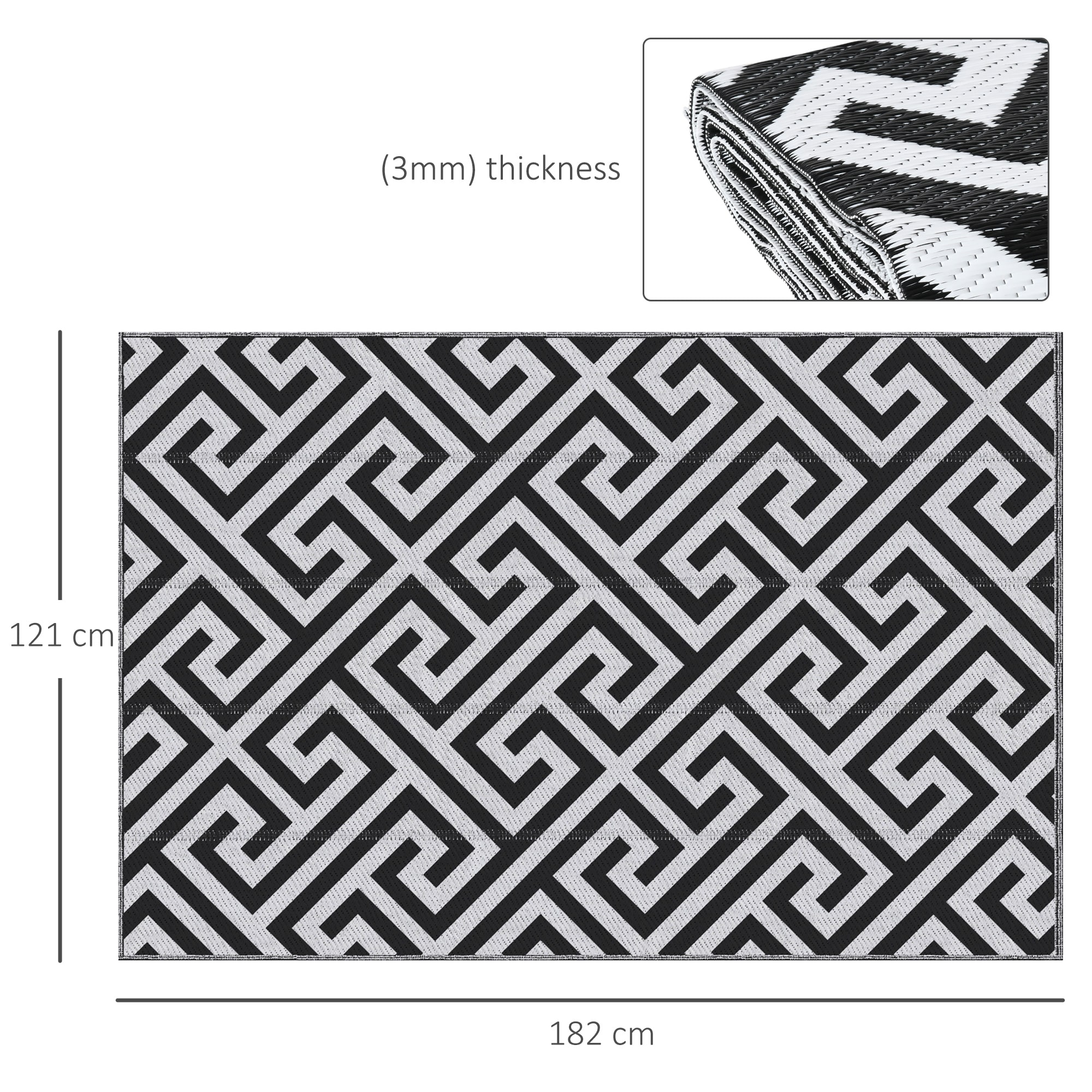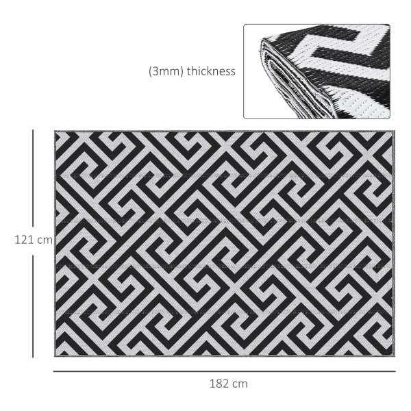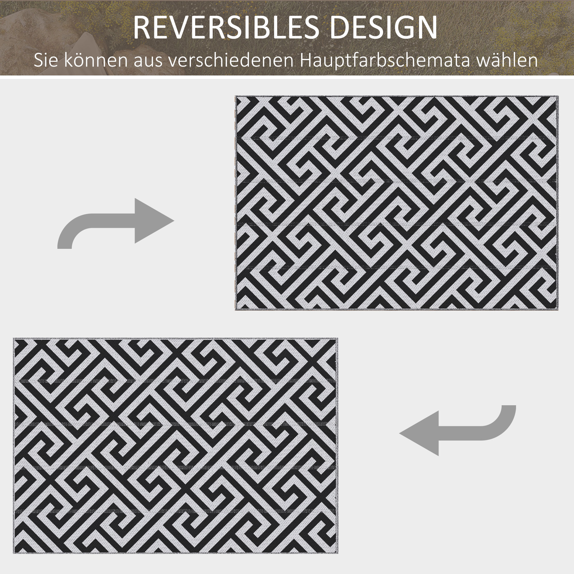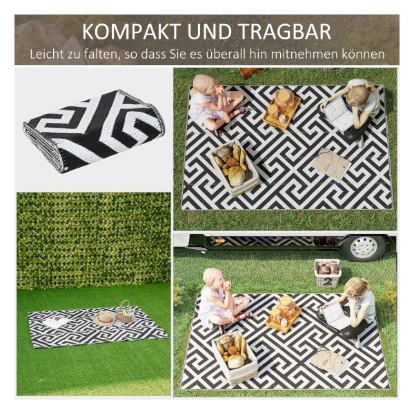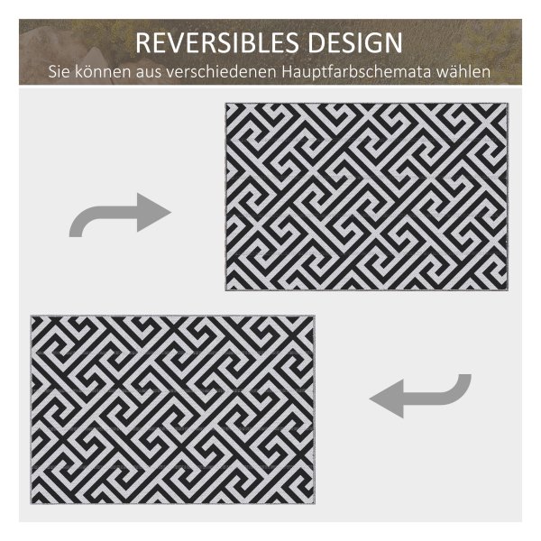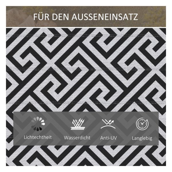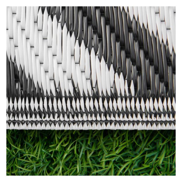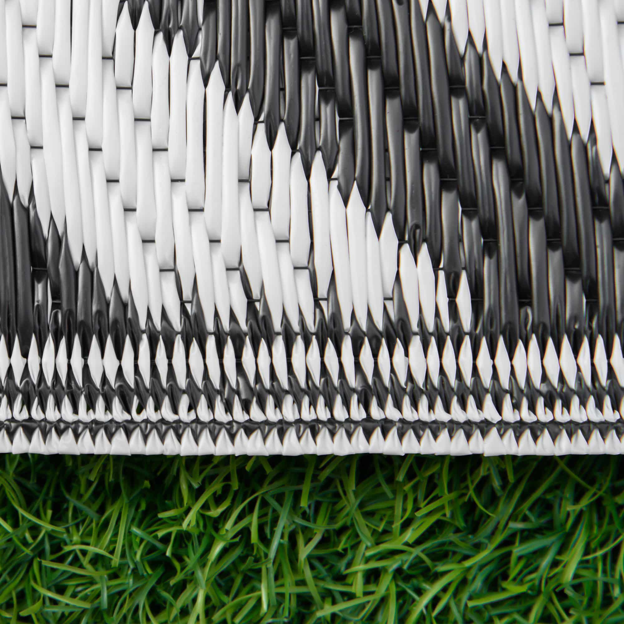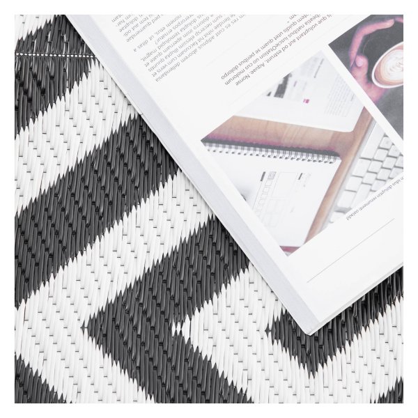 - Stijlvol design: Het zwart/witte patroon van dit buitentapijt geeft een moderne uitstraling aan je balkon of terras. Het past perfect bij verschillende soorten tuinmeubilair en decoraties.