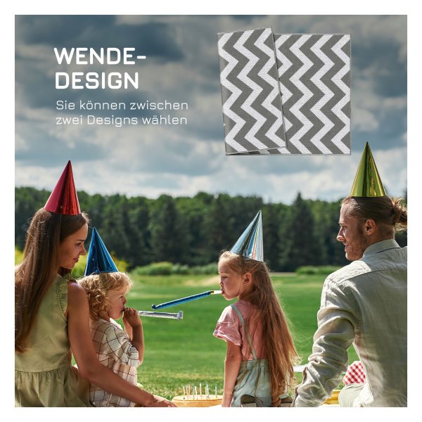 Of je nu geniet van een ontspannen avond op het terras met vrienden, een camperexcursie maakt of gewoon wilt ontspannen in jouw eigen tuin, dit tapijt biedt de perfecte basis voor elk buitenavontuur.
