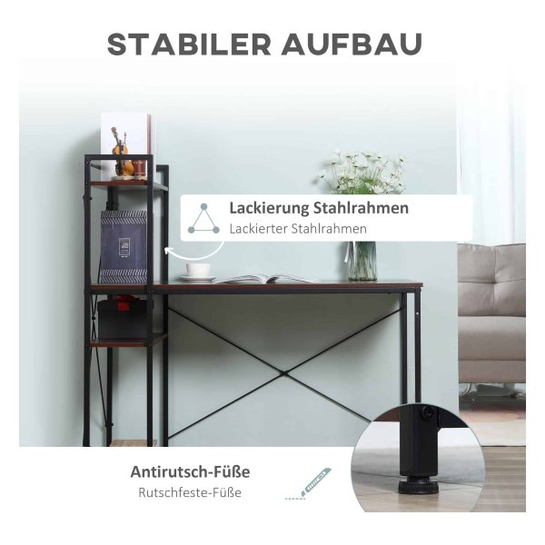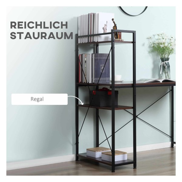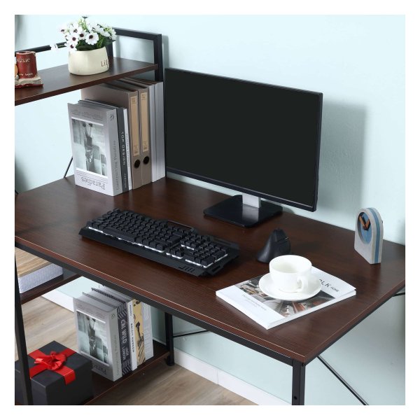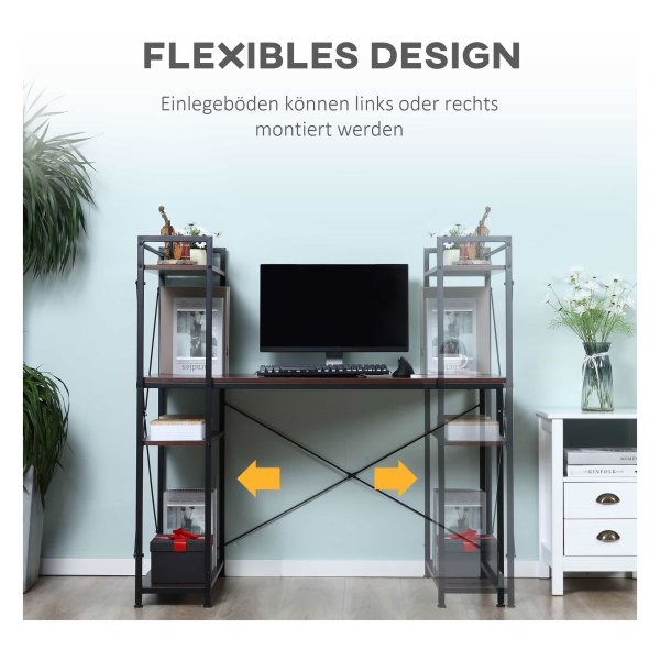 Deze kantoortafel is voorzien van een boekenplank die flexibel kan worden geïnstalleerd aan de linkerkant of rechterkant van de tafel, zodat je jouw boeken, documenten en kantoorbenodigdheden georganiseerd kunt houden. De 4 opslagcompartimenten bieden voldoende ruimte voor al jouw spullen, waardoor alles binnen handbereik is terwijl je werkt.