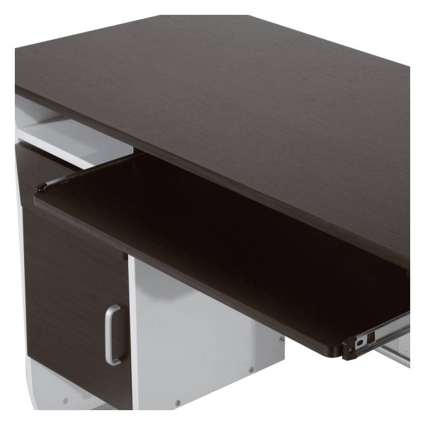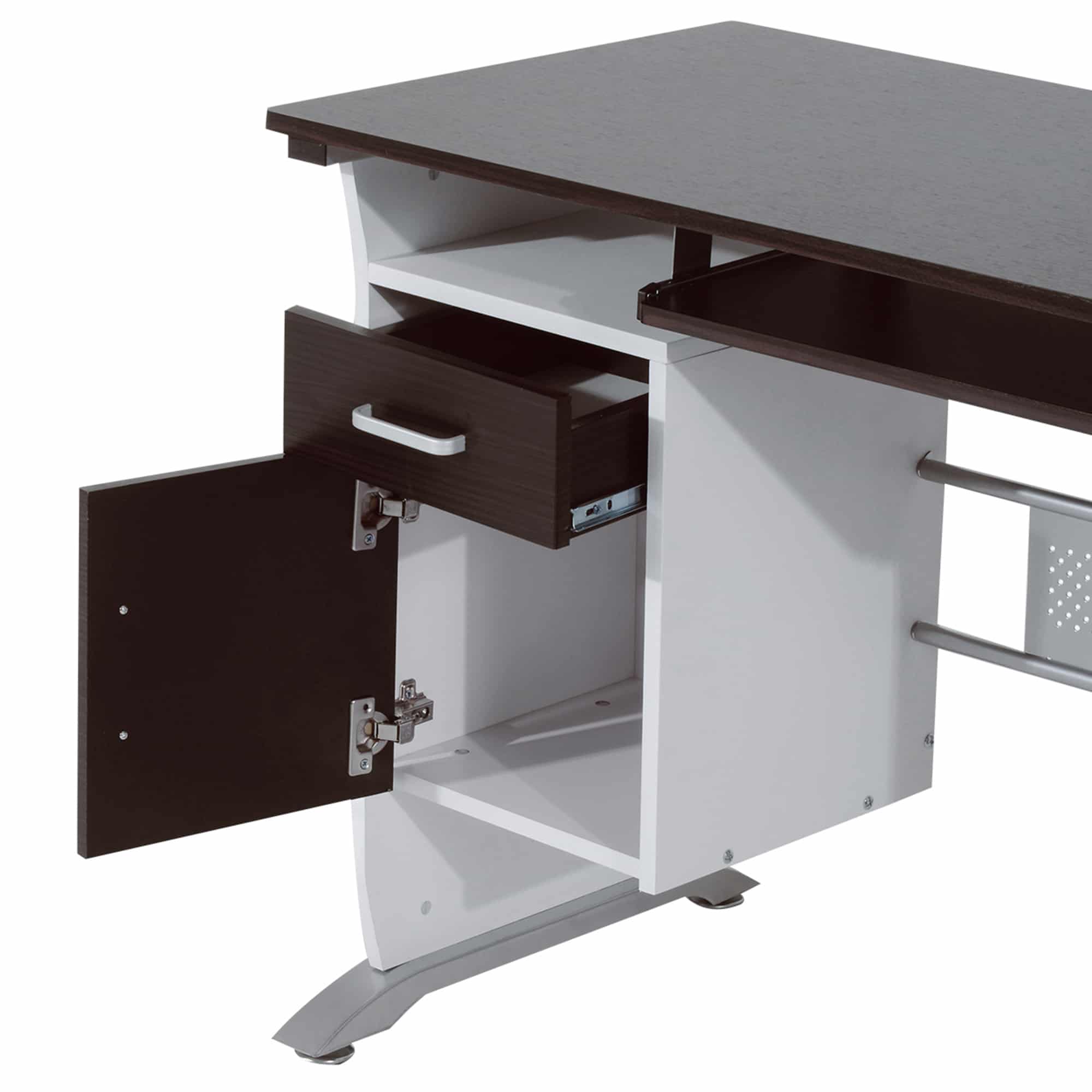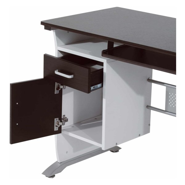 Dit bureau biedt een ruime werkruimte en een handige uitschuifbare plank voor je toetsenbord, waardoor je productief kunt werken. De anti-slip voeten zorgen ervoor dat het bureau stabiel staat, wat ongestoord werken mogelijk maakt.