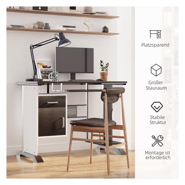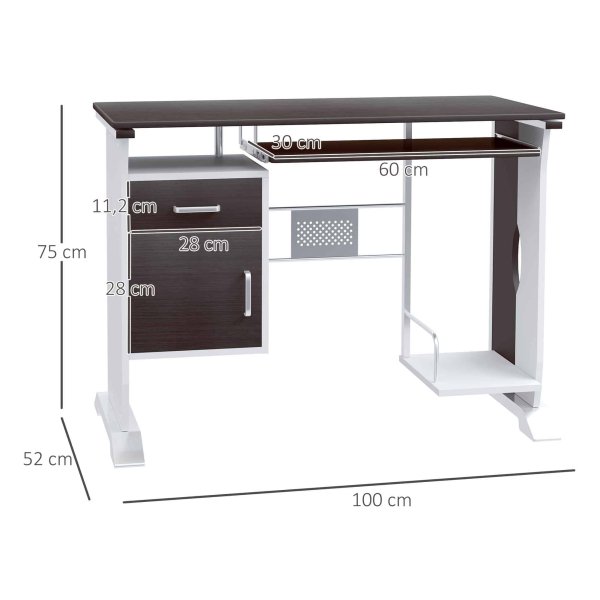 Het bureau van Zaza Home is gemaakt van hoogwaardig metaal en MDF, wat zorgt voor een stabiele en duurzame constructie. Met afmetingen van 100L x 52B x 75H cm is dit bureau ideaal voor zelfs de kleinste ruimtes. De lade en kast bieden voldoende opbergruimte voor al je benodigdheden.