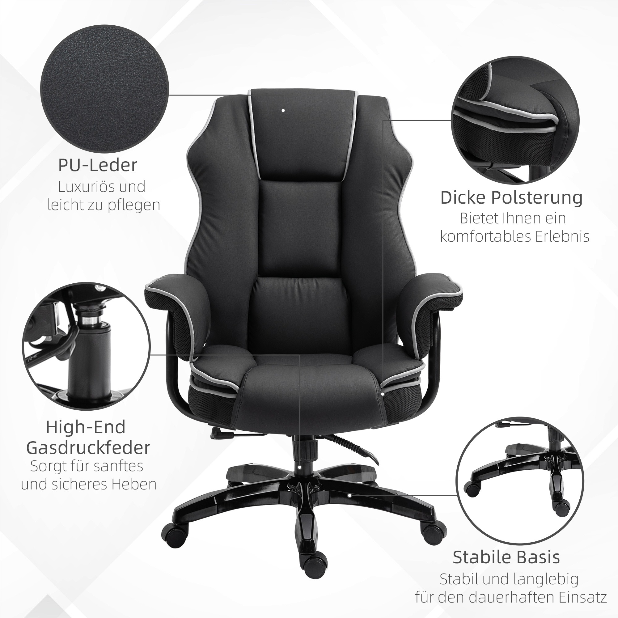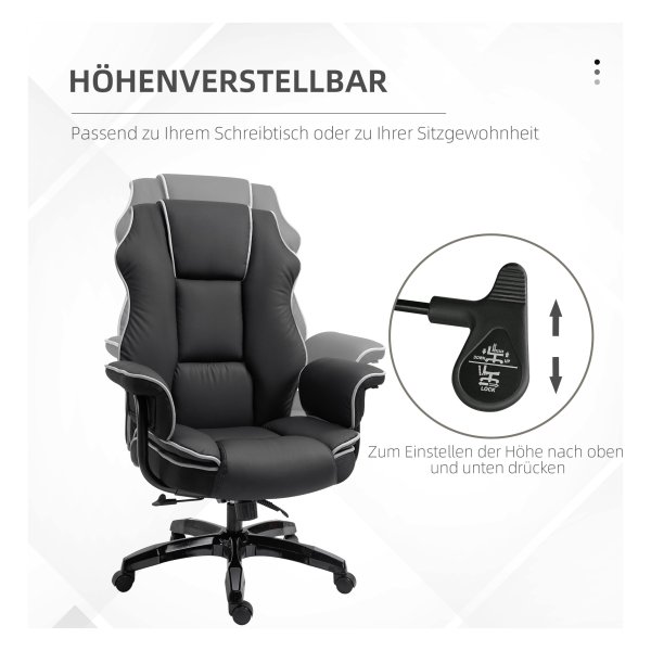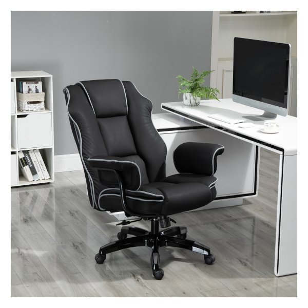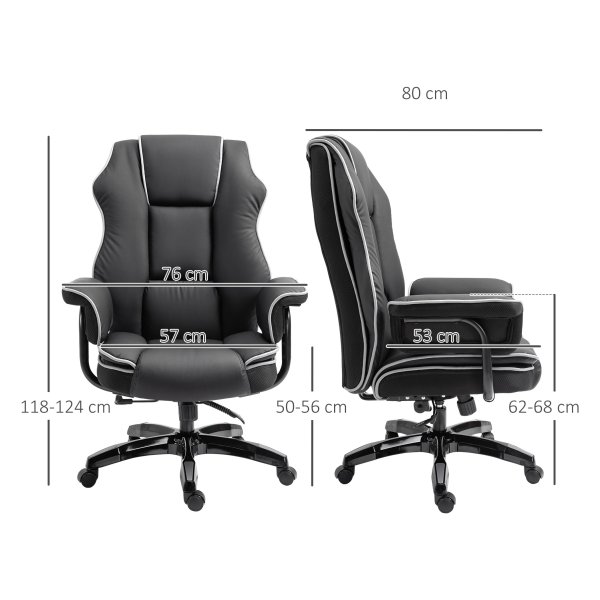 Deze ergonomische kantoorstoel is vervaardigd uit hoogwaardige materialen, zoals synthetisch leer, schuim en nylon gecoate voeten. Met een totale afmeting van 76B x 80T x 118-124H cm en volledig instelbare afmetingen van 50B x 125T x 52H cm past deze stoel perfect in elke werkruimte.