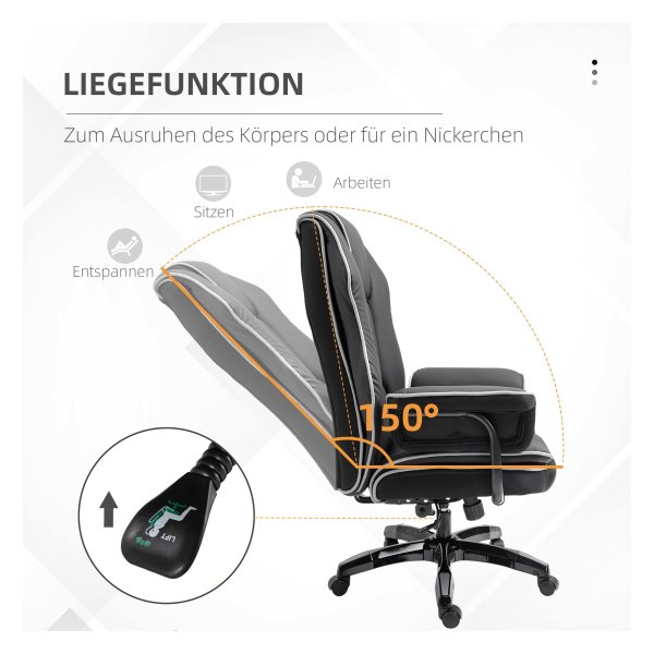 Deze stoel is ontworpen met jouw comfort als prioriteit. Met een verstelbare stoelhoogte pas je de stoel moeiteloos aan op jouw lichaam en zithouding, zodat je de hele dag comfortabel kunt blijven zitten. Daarnaast is de rugleuning verstelbaar tot 150 graden, zodat je altijd een optimale zit- of ligpositie kunt vinden die aan jouw wensen voldoet.