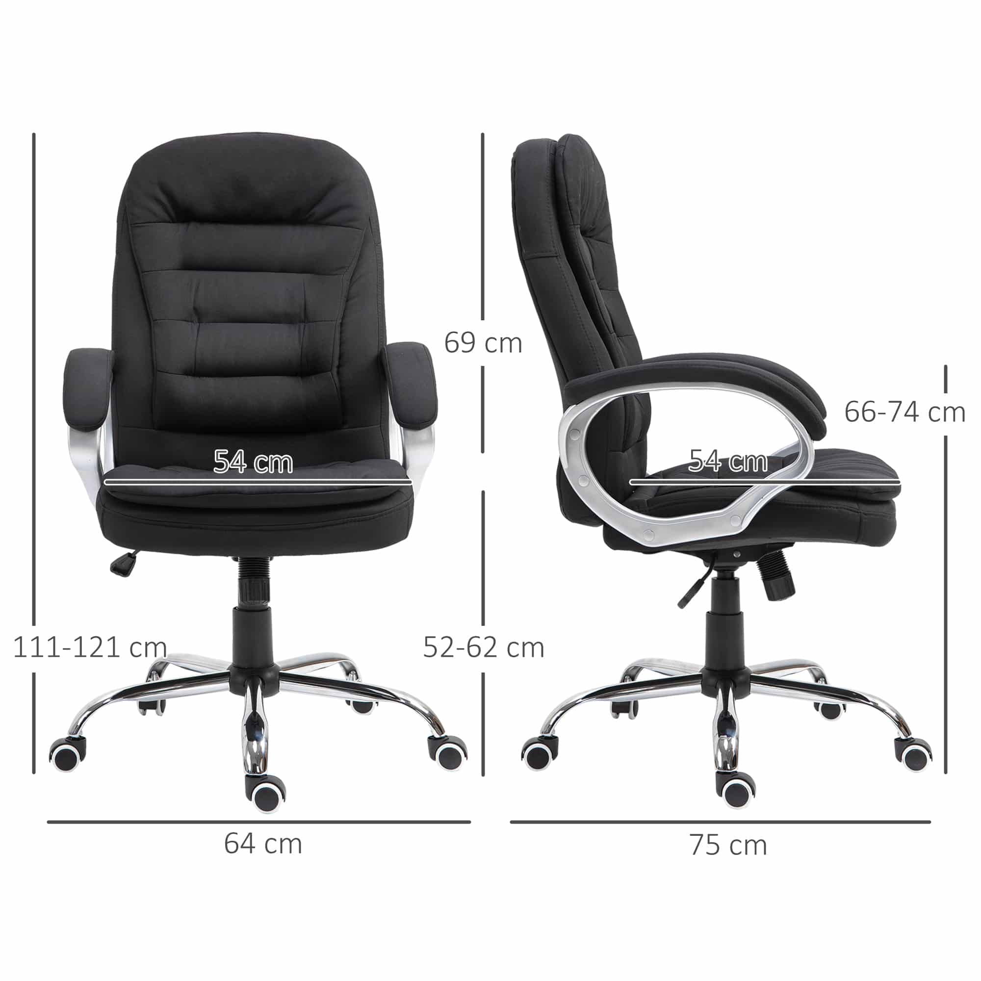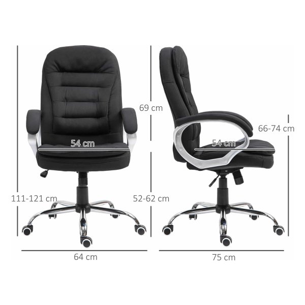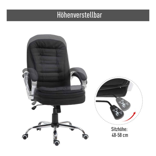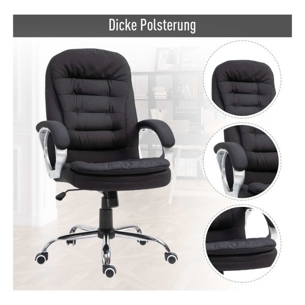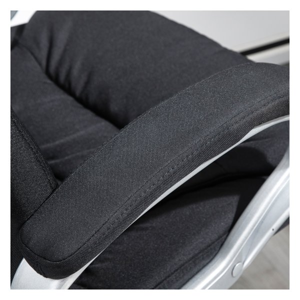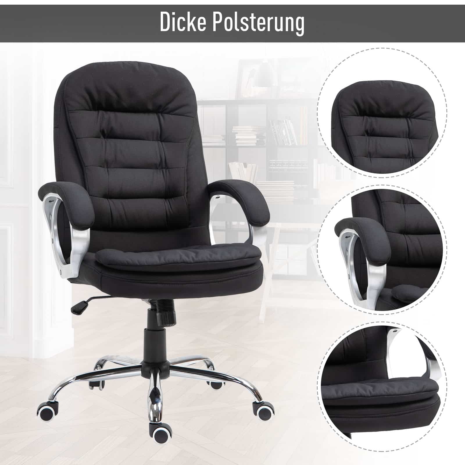 De ademende linnen bekleding zorgt ervoor dat u comfortabel kunt zitten, ongeacht de temperatuur in de ruimte. De stoel is uitgerust met gezellige armleuningen en een glad wipmechanisme voor ontspanning tussen het werken door.
