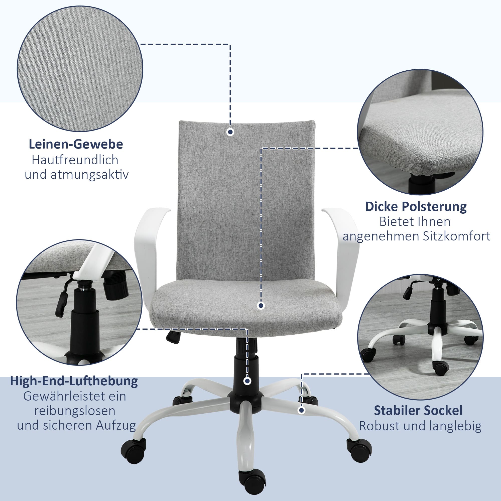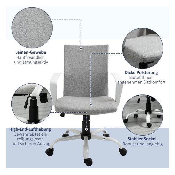 De rugleuning van deze bureaustoel is ontworpen om het lichaam perfect te omhelzen, zodat je altijd in de juiste houding zit. De zachte vulling en het ademende linnen materiaal zorgen voor extra comfort, zelfs tijdens lange zittijden.