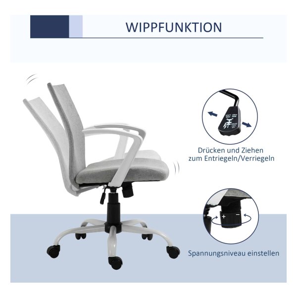 Ergonomische bureaustoel – Comfortabel zitten – Rugleuning met schommelfunctie – Grijs
