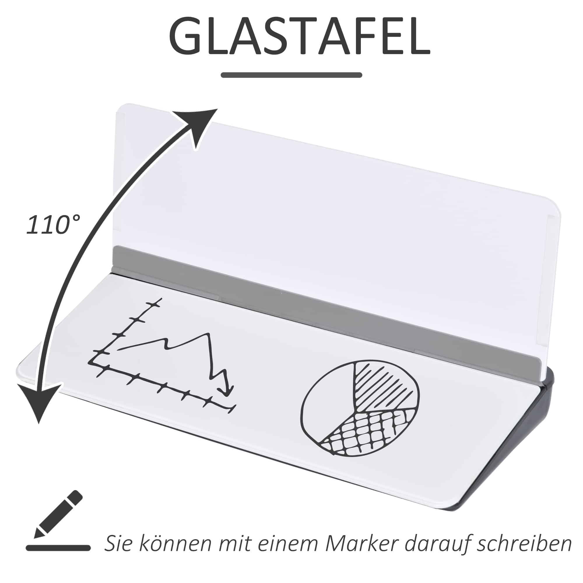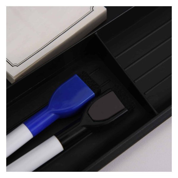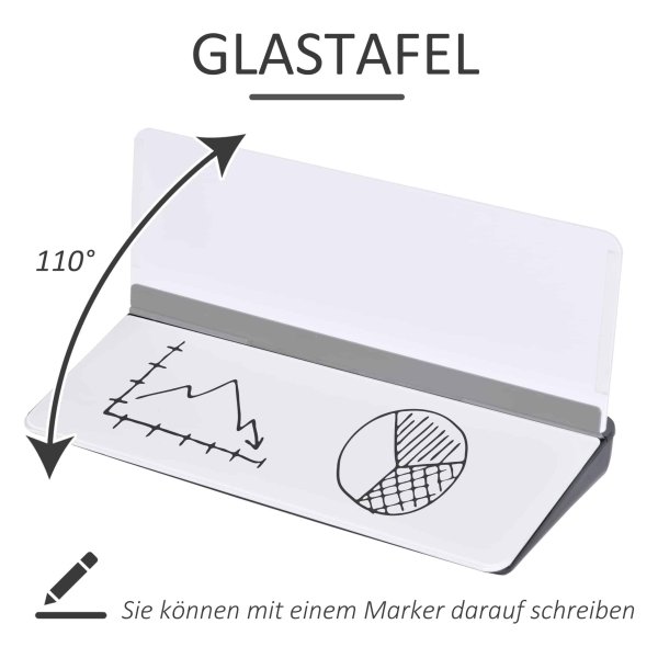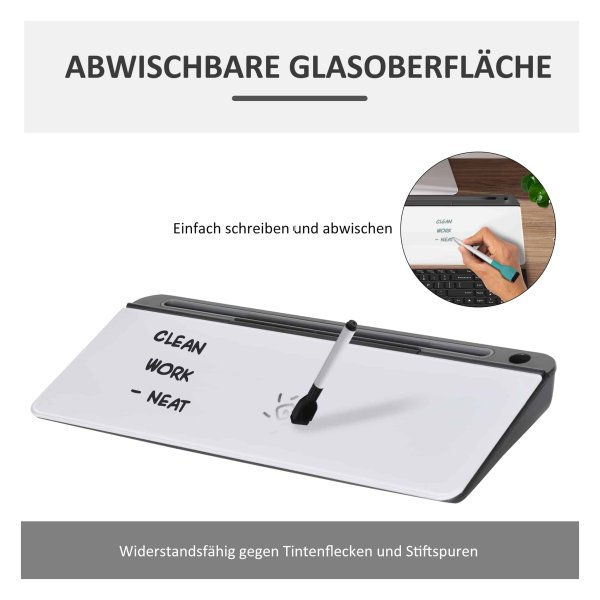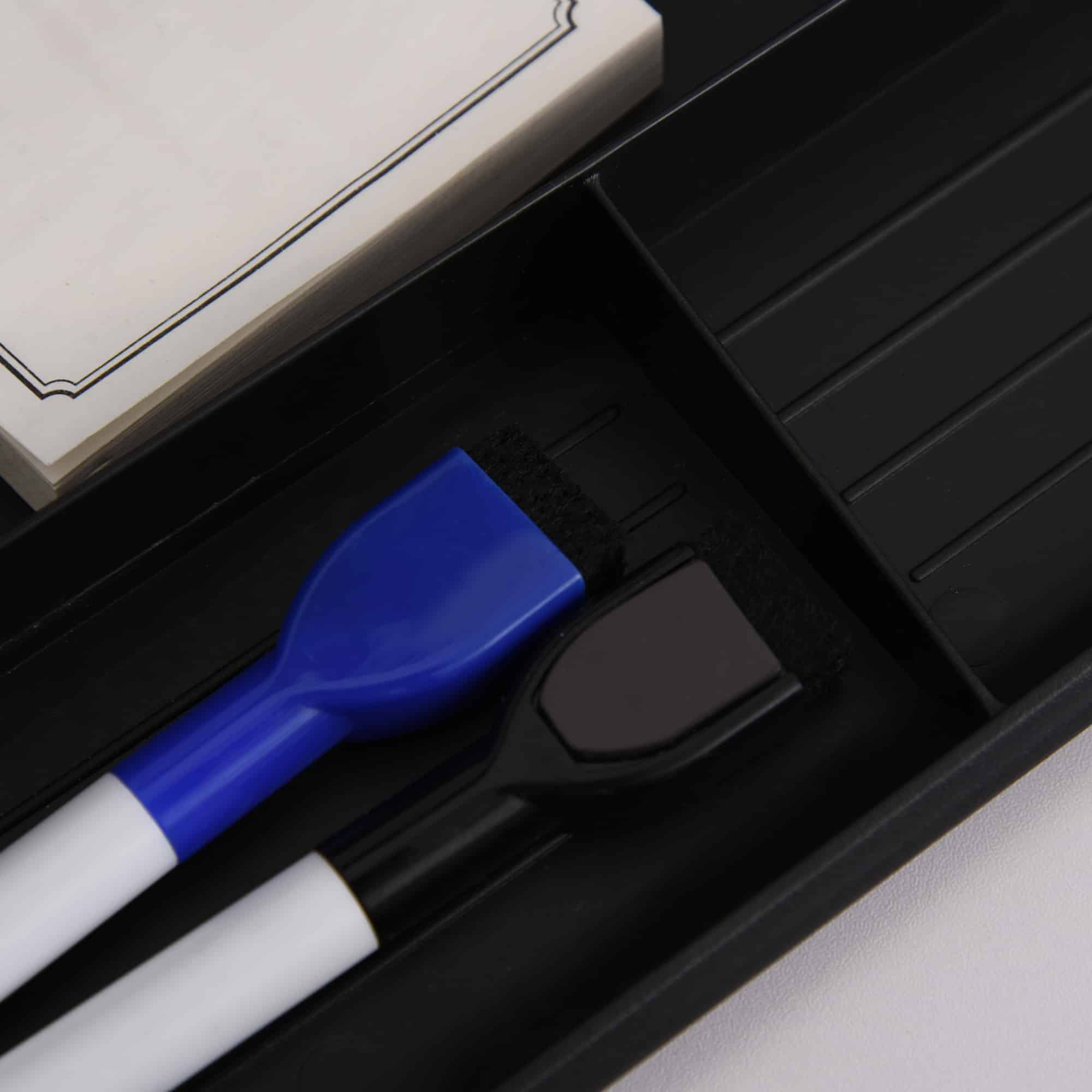 - Het glazen oppervlak kan gemakkelijk worden gebruikt als memobord. Schrijf belangrijke notities, herinneringen of taken op met een whiteboard marker.