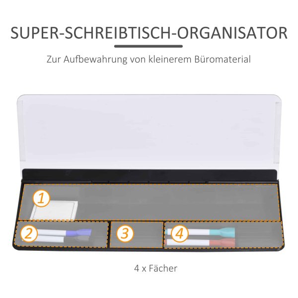 Daarnaast wordt de desk organizer geleverd met eenvoudige montage-instructies, zodat je hem snel en gemakkelijk in gebruik kunt nemen. De combinatie van wit en zwart geeft een moderne uitstraling aan elke werkruimte.