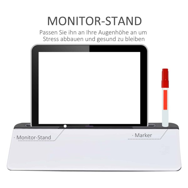 Het glazen paneel van het Memobord kan tot 110 graden worden geopend, waardoor het eenvoudig is om notities te maken en ideeën te delen. Daarnaast zijn er twee groeven aan de bovenkant van het bord die gebruikt kunnen worden als monitorstandaard, waardoor je houding verbetert en stress wordt verminderd.