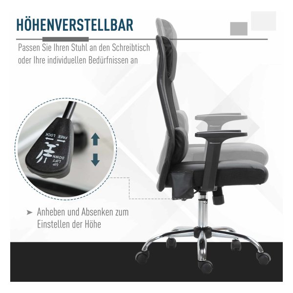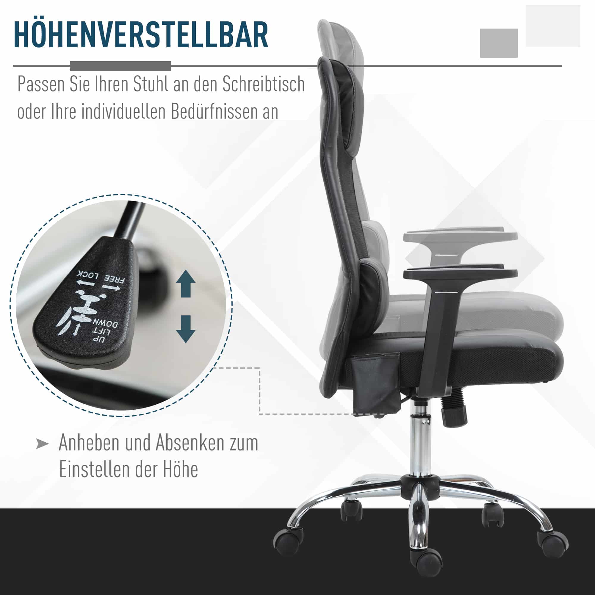 Het ergonomische lijnontwerp met dikke vulling en ademend netwerkweefsel zorgt voor een comfortabele zitervaring. Verstel de stoelhoogte eenvoudig om de juiste positie te vinden en voorkom rugklachten. De massagefunctie biedt extra ontspanning voor zowel je lichaam als geest, waardoor je productiever kunt werken.
