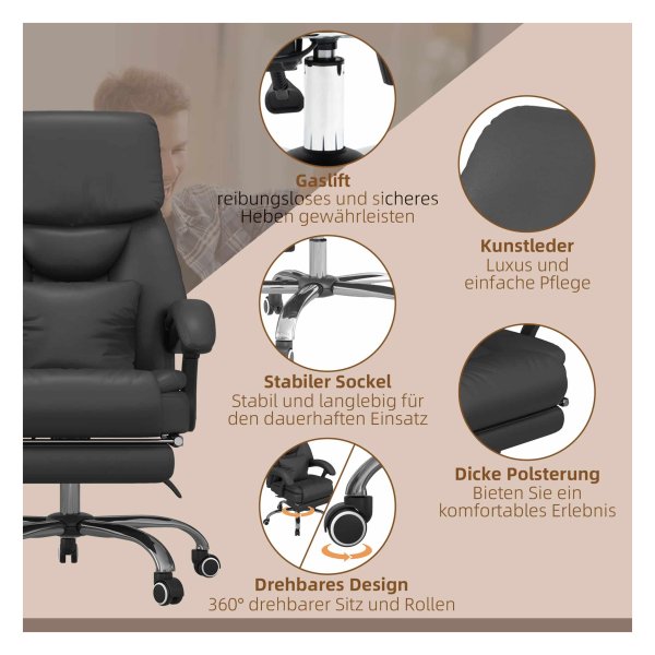 Bullet Point 1 | Stel uw positie in: de stoelhoogte van deze comfortabele bureaustoel kan worden ingesteld van 48 cm tot 56 cm zodat u het kunt aanpassen aan Uw bureau en uw zitkosten |