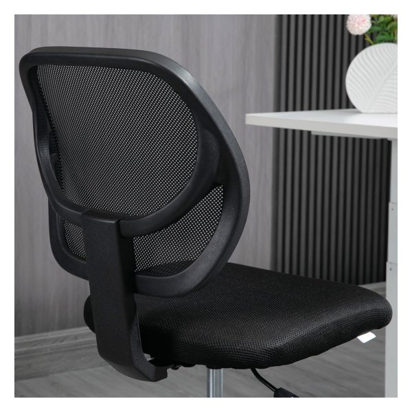 Met de draaifunctie en de soepele rolwieltjes kunt u zich eenvoudig en snel verplaatsen in uw werkomgeving. De armleuningen zijn bewust weggelaten, zodat u vrij kunt bewegen en de stoel makkelijk onder uw bureau kunt schuiven.