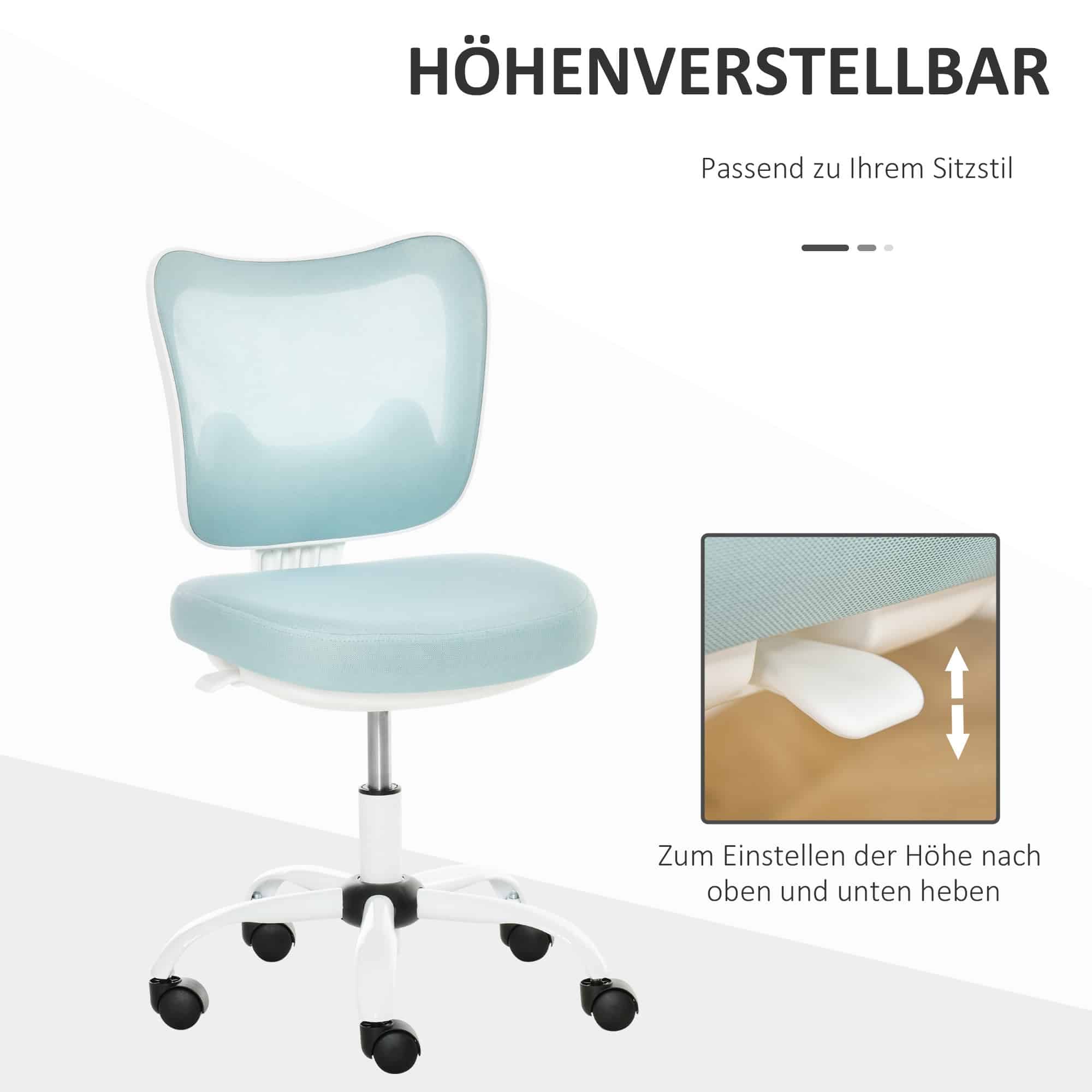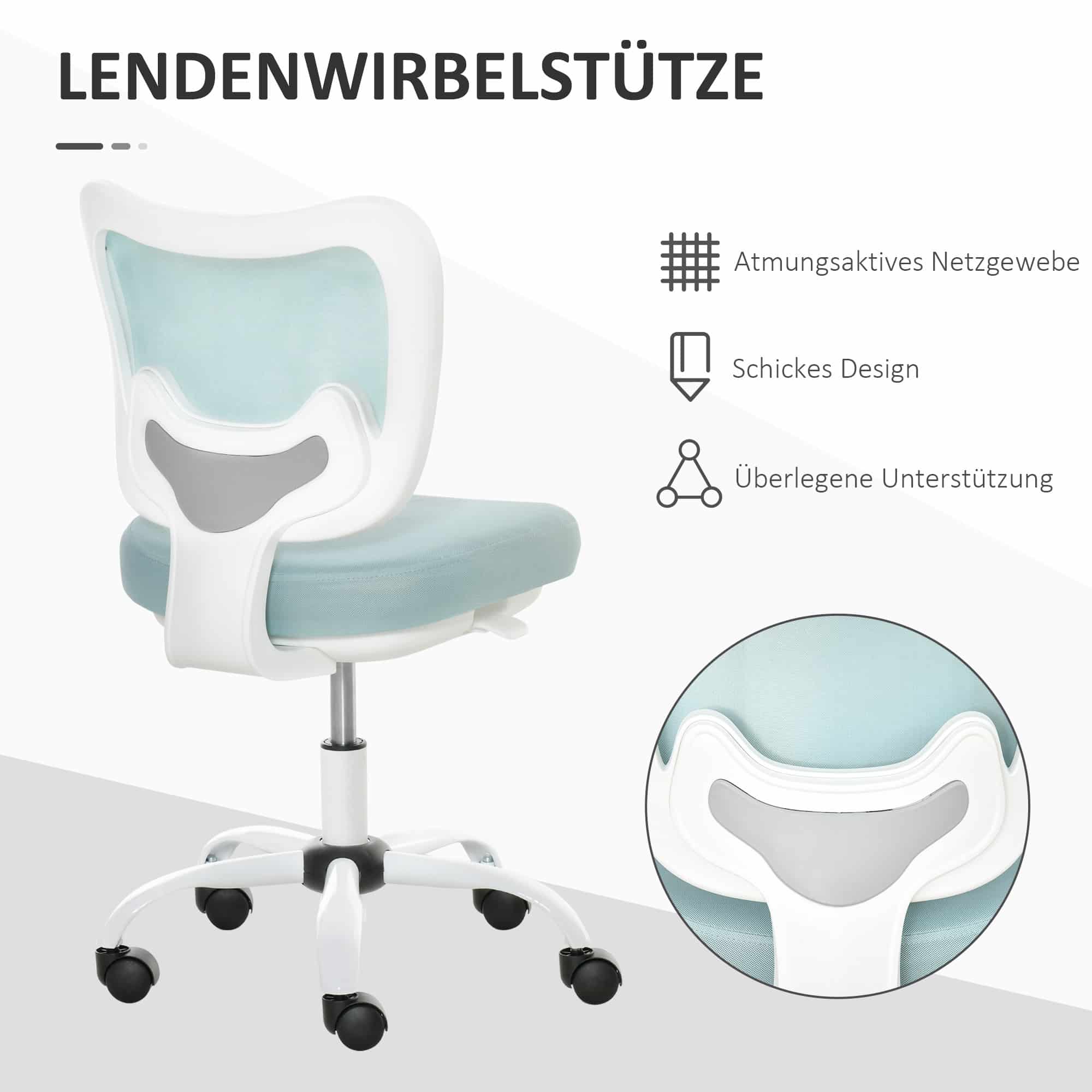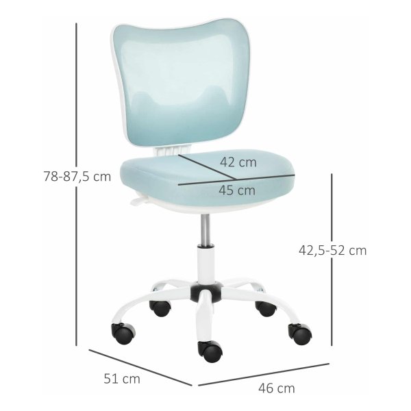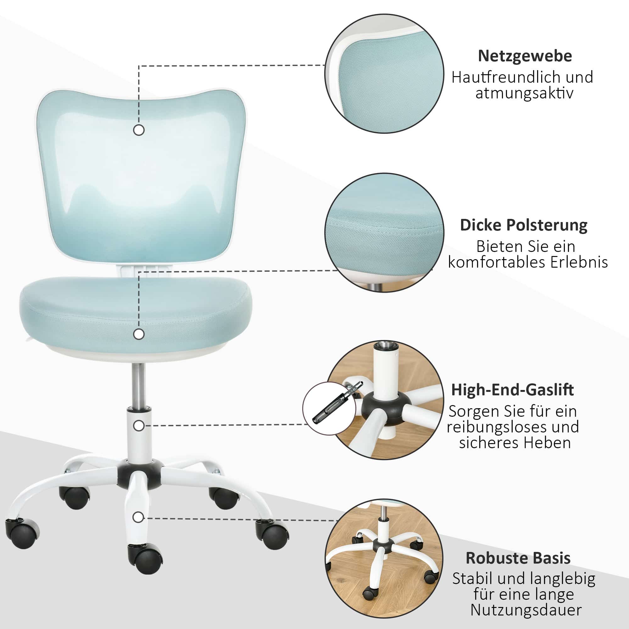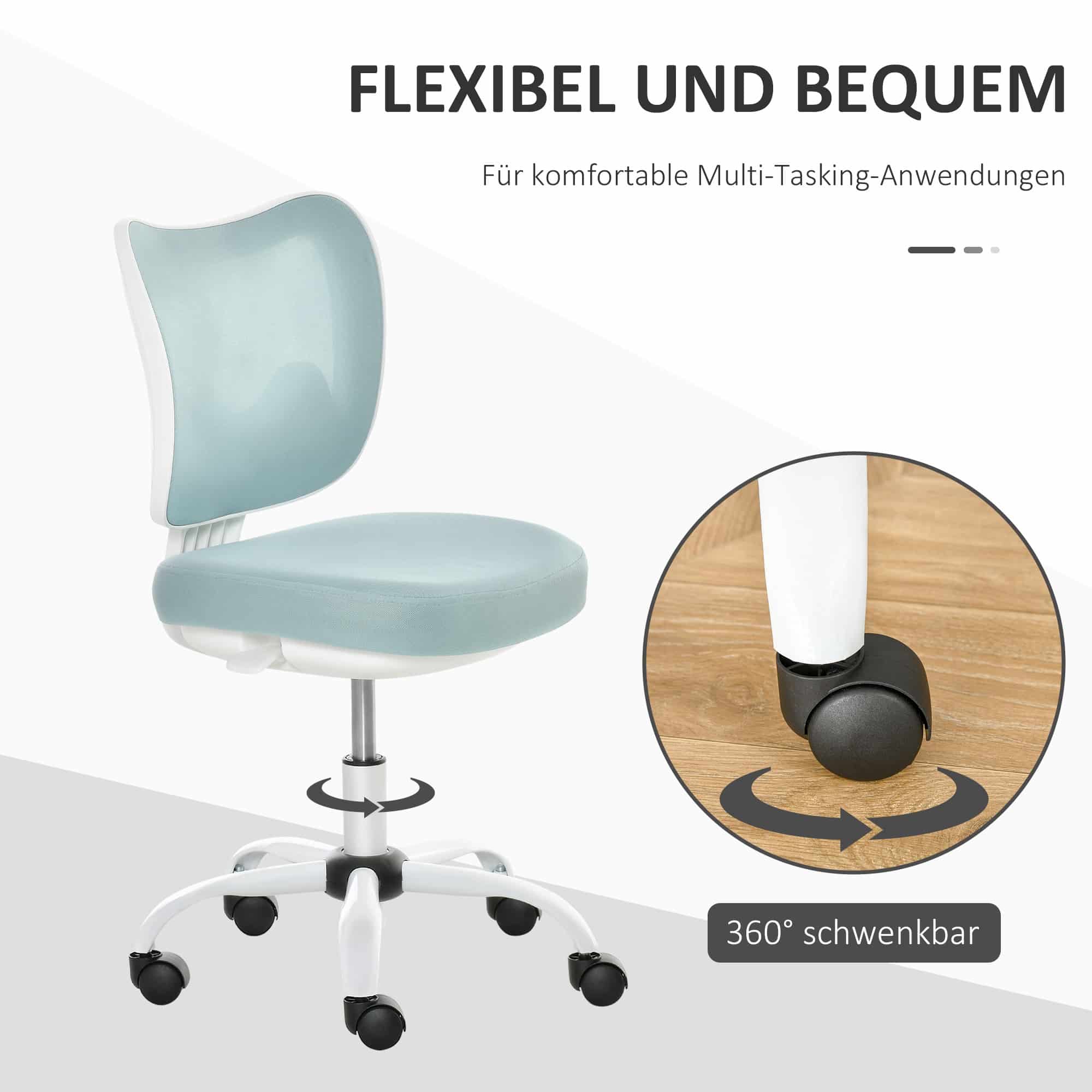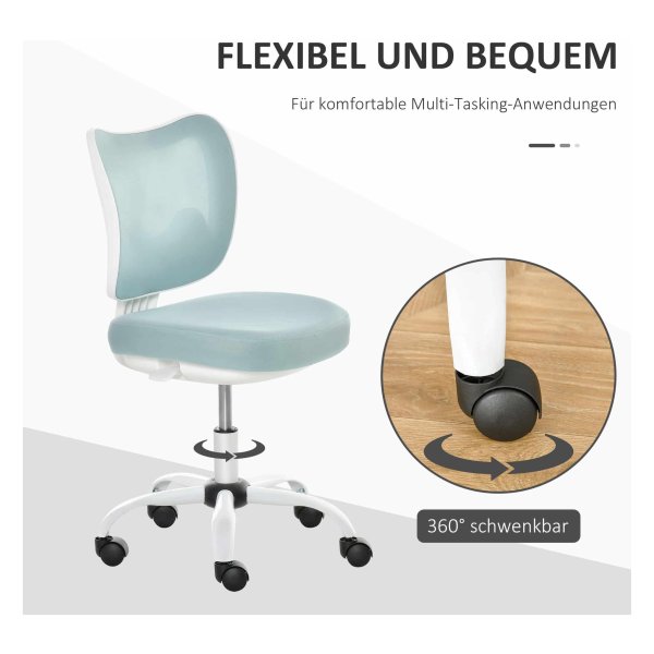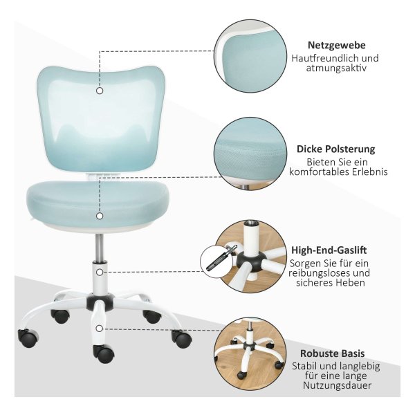 BUSCHAKSSTOEL roterende stoelstoel zonder armleuningen Hoogte Verstelbaar schuim ABS Metaal wit+lichtblauw 46 x 51 x 78-87,5 cm