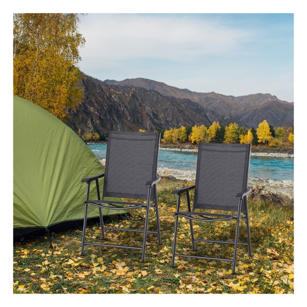 Campingstoel – – Met armleuning – Opvouwbaar – Zwart
