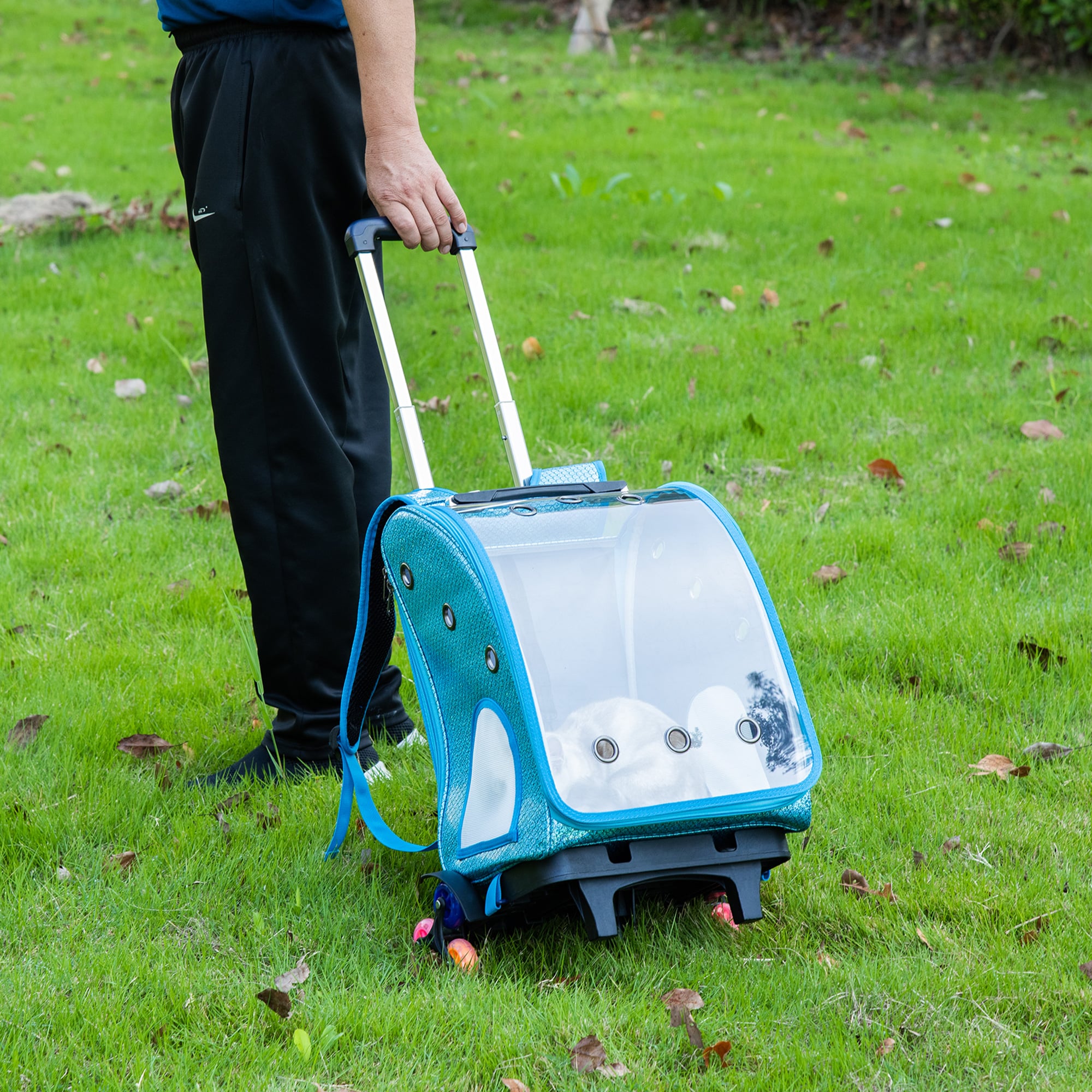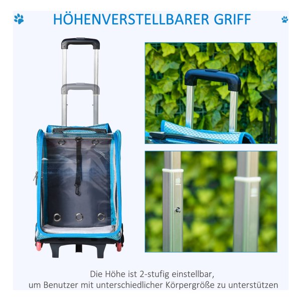 Met de hondentrolley van ComfortPet hoef je je geen zorgen te maken over de veiligheid en het comfort van je huisdier tijdens het reizen. Het blauwe design zorgt voor een vrolijke uitstraling en is gemakkelijk te combineren met andere accessoires. De trolley is compact en handig in gebruik, waardoor het een ideale keuze is voor zowel korte uitstapjes als langere reizen.
