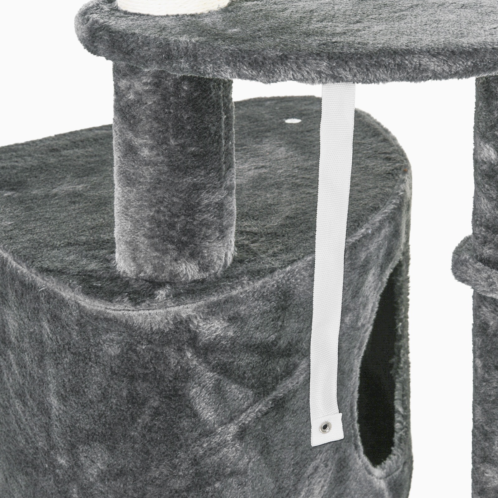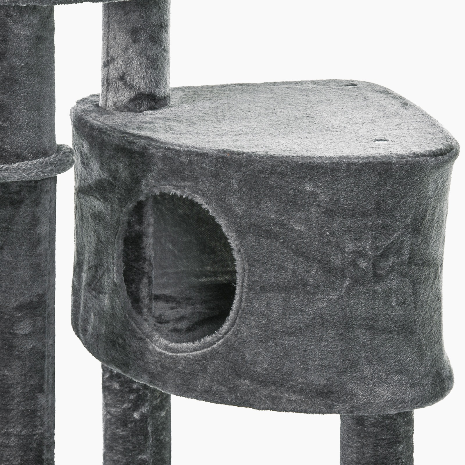 Met meerdere platforms biedt deze klimboom uw kat talloze speelmogelijkheden. De stevige constructie zorgt ervoor dat uw klimboom stabiel blijft, zelfs tijdens de wildste speelsessies. De donkergrijze kleur geeft de klimboom een moderne uitstraling die bij elk interieur past.