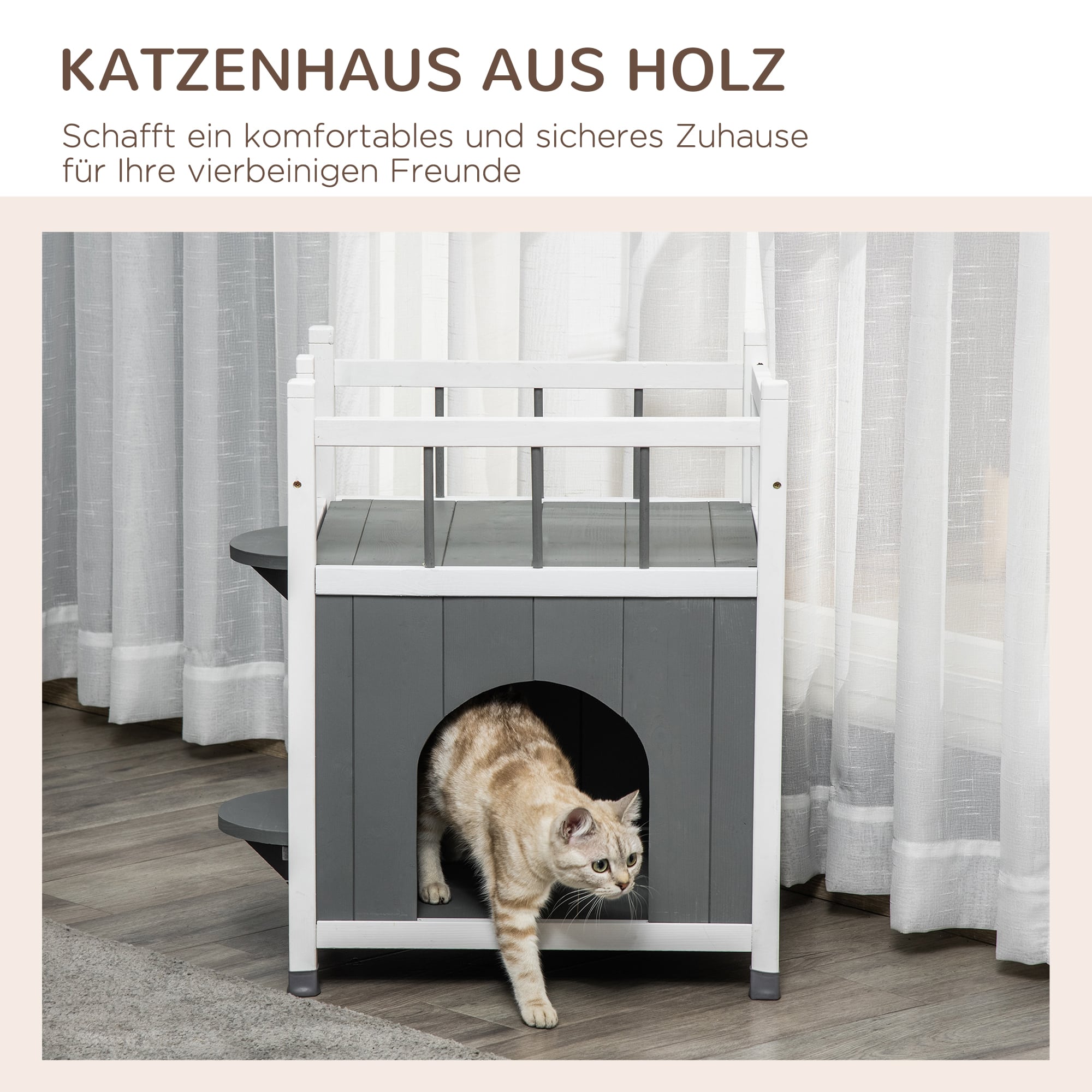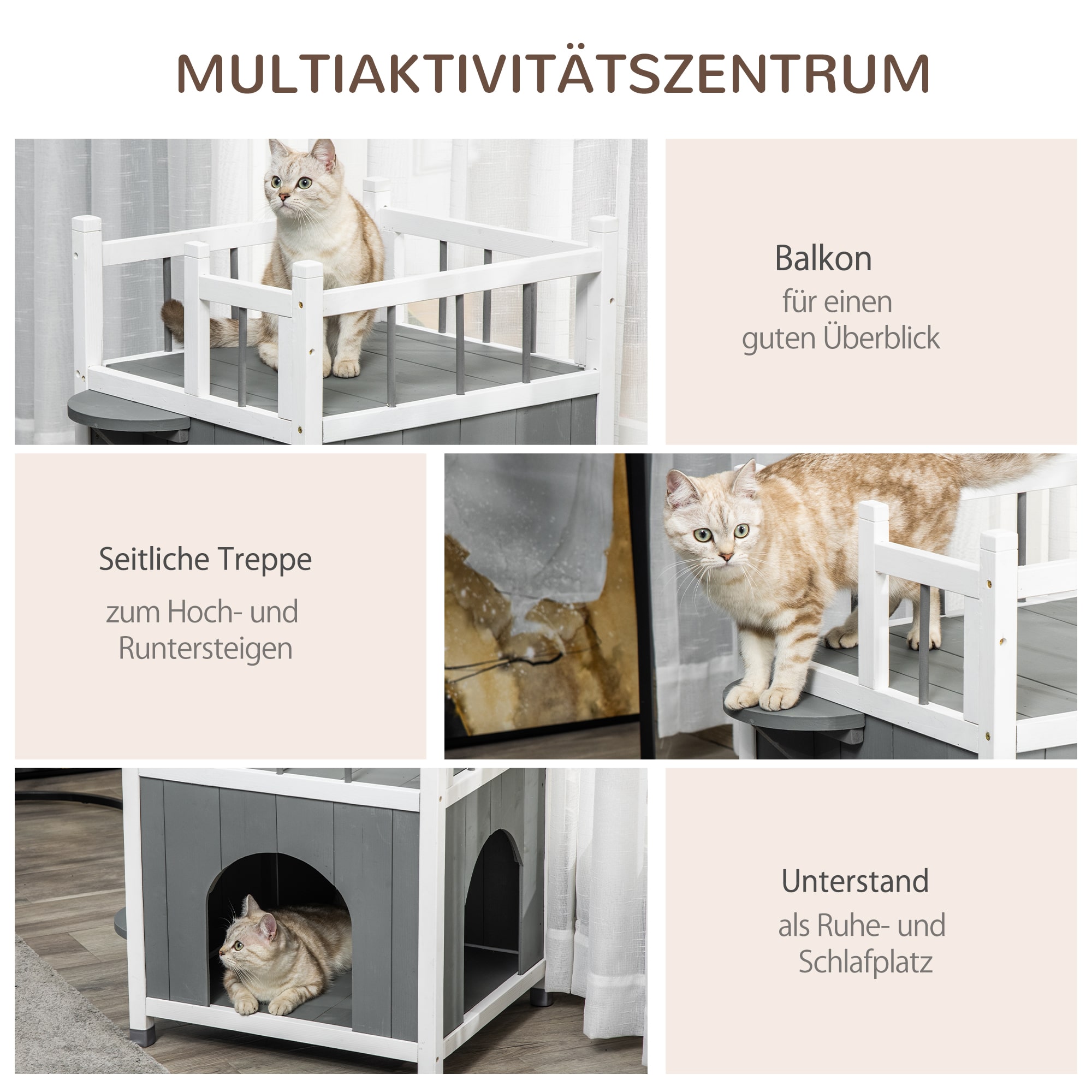 Kattenhuis – Houten Paradijs – Winterbestendig – Balkon – Grijs & Wit